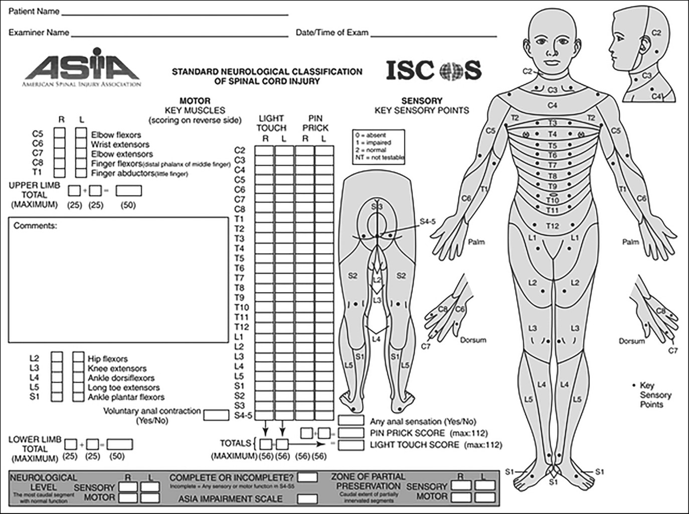La historia clínica debe incluir información sobre el tipo de arma utilizada, el número de disparos, la cercanía con el arma y la localización de los orificios de entrada y salida del proyectil. Además, se debe realizar un examen neurológico detallado, que incluya el estado de alerta del paciente y la evaluación utilizando la escala ASIA (American Spinal Injury Association) para clasificar la gravedad de la lesión (Figura 1).