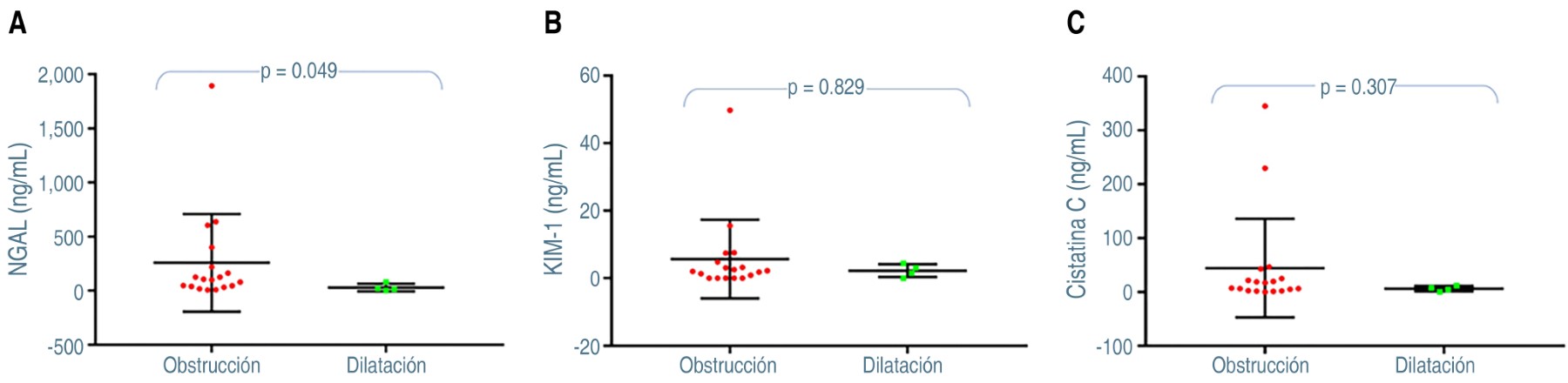 Comparación de biomarcadores urinarios en niños con obstrucción o dilatación del tracto urinario superior