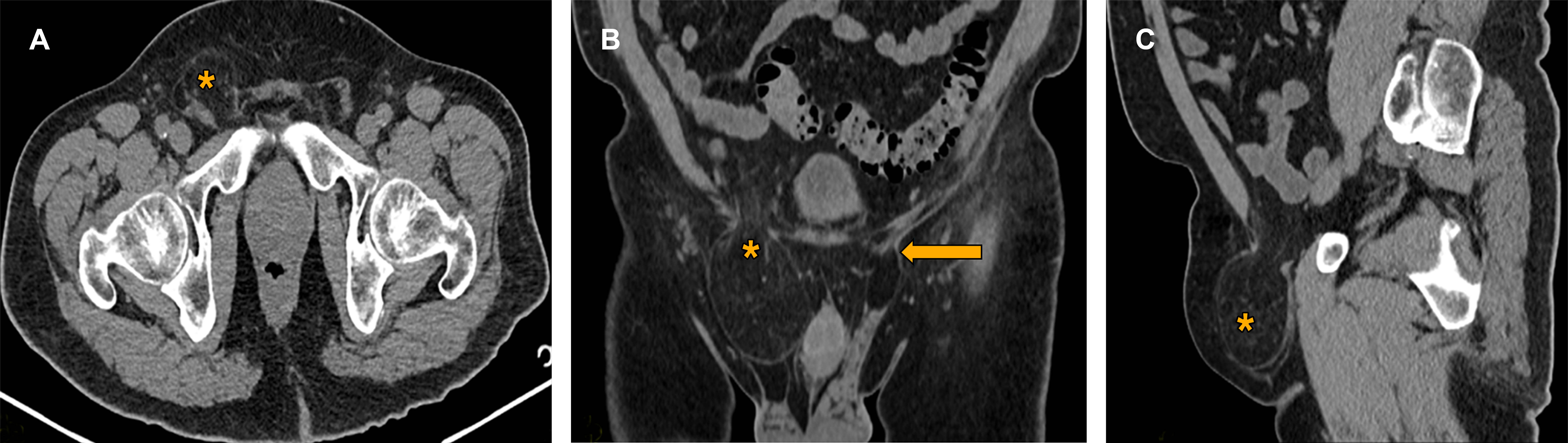 La TC ayuda a establecer un diagnóstico eficaz de las hernias de pared abdominal y región inguinal, diferenciándolas de otras situaciones que simulan hernias. Además, es útil para determinar con exactitud el tamaño y la morfología del orificio herniario gracias a las reconstrucciones multiplanares, lo que permite realizar la clasificación de la patología herniaria de acuerdo a los criterios de la European Hernia Society.6