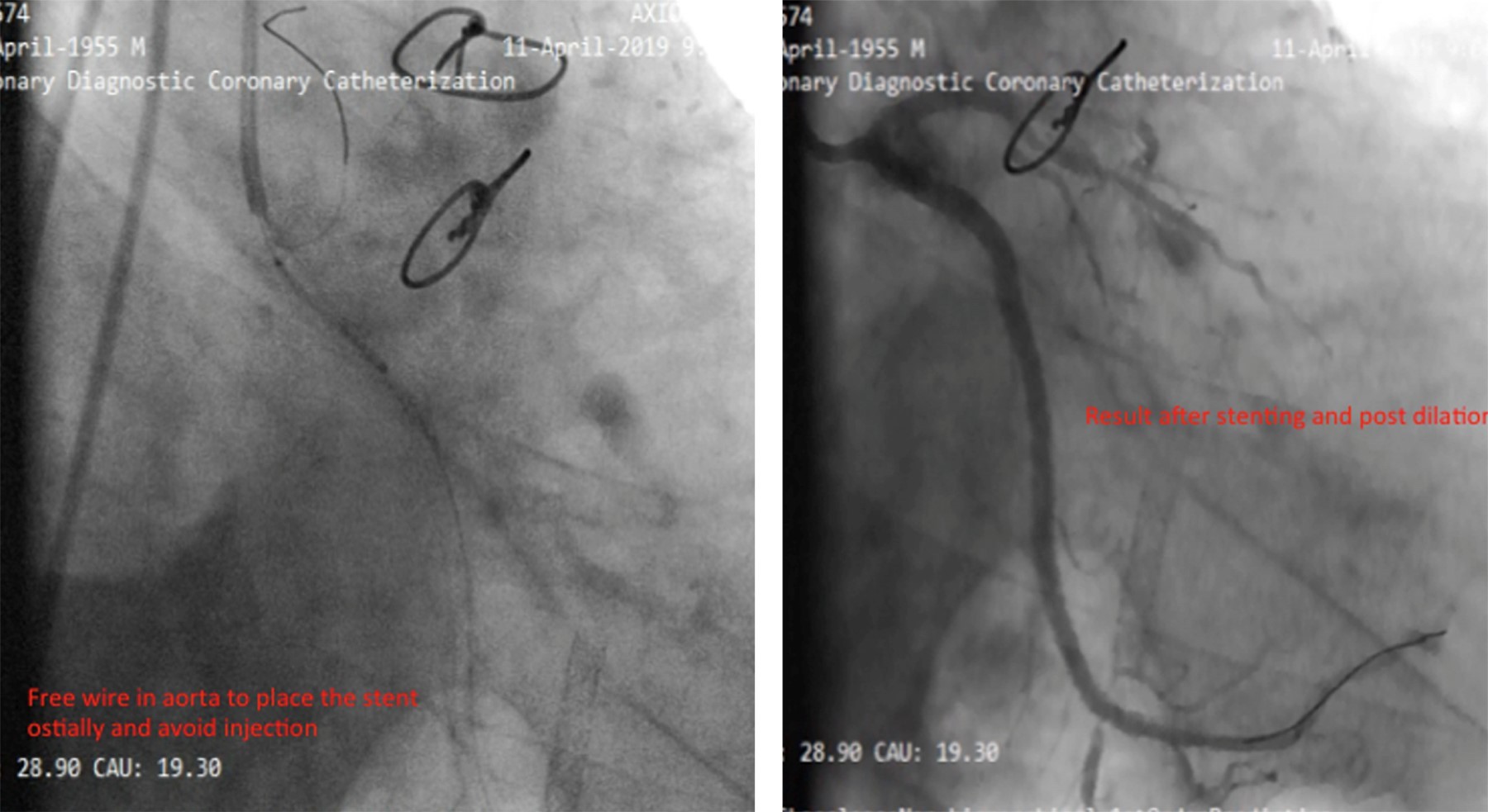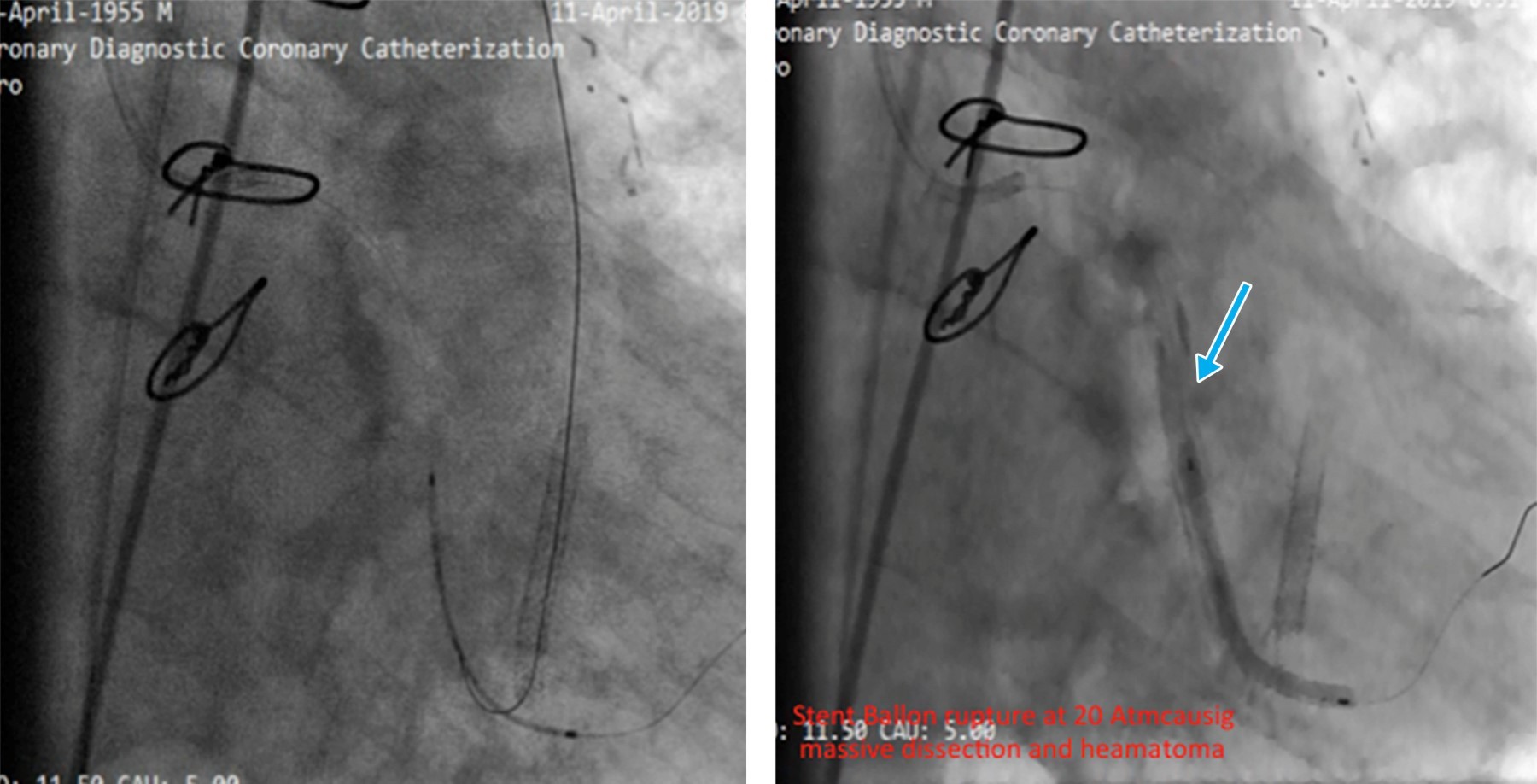 Reportamos el caso de un hombre de 78 años con antecedentes de cirugía de revascularización coronaria (CRC) e intervención coronaria percutánea (ICP) del injerto de vena safena (IVS) a la arteria marginal obtusa (MO). El paciente presentó síndrome coronario agudo y fue derivado a atención terciaria después de que la angiografía coronaria revelara reestenosis intrastent en una IVS trombótica, junto con oclusión total crónica (OTC) de la arteria circunfleja izquierda (CI). Nuestro plan inicial fue la intervención de IVS a MO debido a reestenosis del stent y trombosis. Durante el procedimiento, una rotura de balón resultó en disección y hematoma. Como intervención de rescate, se realizó stent nativo en la CI con OTC, seguido de oclusión con coil de la IVS. Surgieron complicaciones cuando el coil se desprendió y fragmentó, lo que llevó a la embolización de una partícula en la aorta descendente y la otra en la arteria femoral. Ambos fragmentos se recuperaron con éxito mediante un lazo. Este caso destaca la complejidad del manejo de las complicaciones de la ICP relacionadas con la IVS y la importancia de manipular cuidadosamente el dispositivo durante los procedimientos de colocación de la bobina.REFERENCIAS (EN ESTE ARTÍCULO)