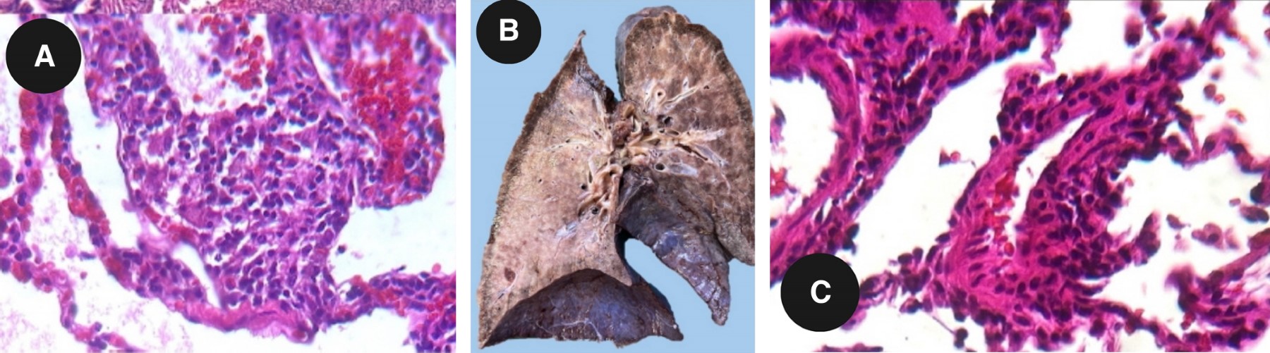 Cuatro meses después, presentó episodio similar manejado con prednisona presentando recuperación parcial. Dos meses posteriores a este último episodio, nuevamente regresó a hospital por insuficiencia respiratoria, en esta ocasión acompañada de hemoptisis. Durante este episodio se documentó poliglobulia, por lo anterior se complementó abordaje con perfil reumatológico, el cual fue negativo, y ante el deterioro de las pruebas de función respiratoria se realizó biopsia pulmonar toracoscópica, el diagnóstico histopatológico fue de neumonitis por hipersensibilidad no fibrótica, por lo que se inició manejo con prednisona más micofenolato de mofetilo más rituximab y nintedanib. El perfil para neumonitis por hipersensibilidad resultó negativo para anticuerpos vs T. candidus, T. vulgaris, Aspergillus, Micropolyspora F, Pigeon serum y S. viridis.