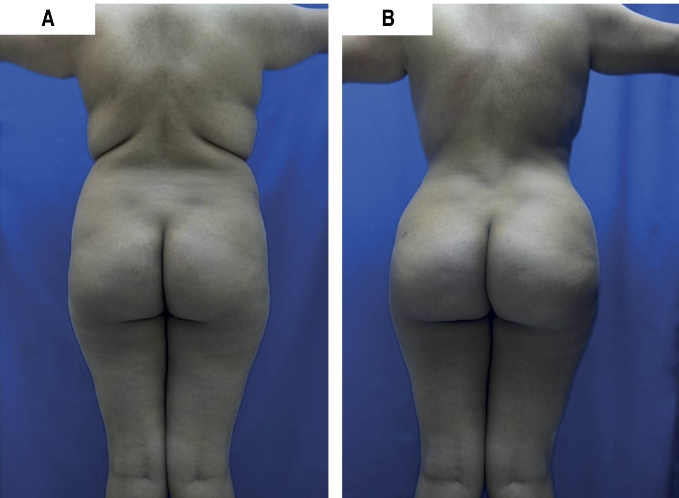 La calificación de resultados de liposucciones se obtuvo midiendo el perímetro de la cintura a nivel umbilical con cinta de tela (Figura 1B).