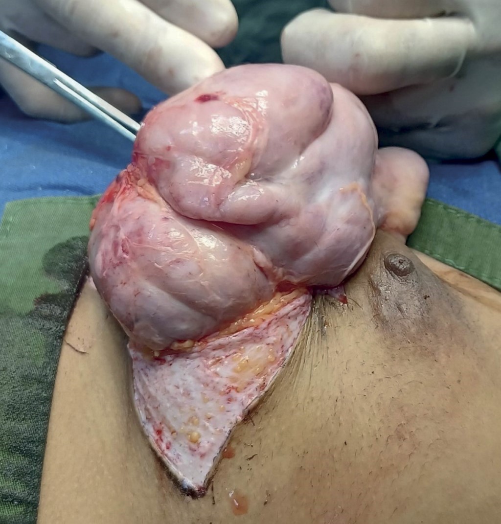Los fibroadenomas se encuentran entre los tumores benignos más comunes en las mujeres. La escisión de un fibroadenoma puede causar un gran déficit de tejido mamario y provocar una deformidad mamaria.11 Aunque la escisión es el tratamiento estándar de fibroadenomas gigantes, el alcance de la cirugía es algo controvertido y varía desde una biopsia por escisión hasta una mamoplastia de reducción o incluso una mastectomía subcutánea.12