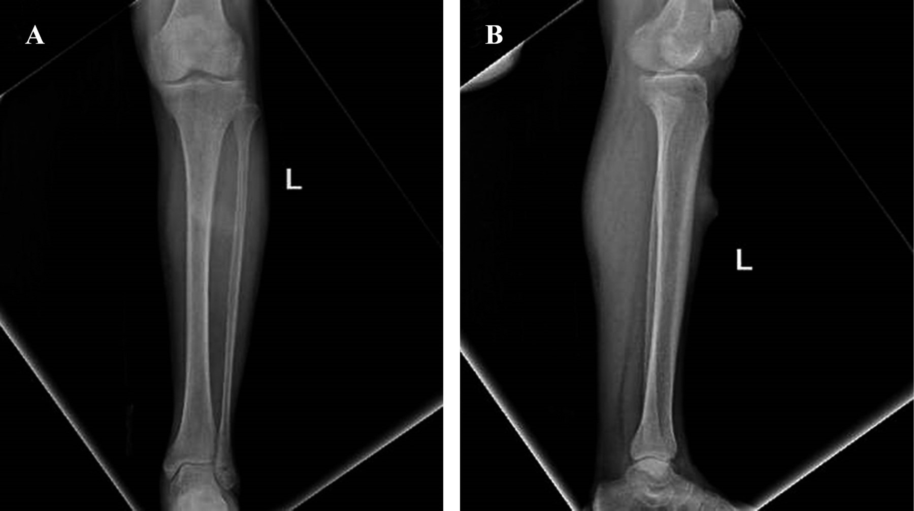 La paciente mostró una evolución favorable, logrando una adecuada integración del injerto y recuperando movilidad total. Se programaron radiografías de seguimiento, las cuales inicialmente no mostraron anormalidades; sin embargo, cuatro meses posteriores a la resección, la paciente experimentó dolor en la zona previamente afectada y nuevas radiografías mostraron una persistencia local en la pierna izquierda. Se discutió con la paciente la necesidad de una nueva intervención quirúrgica aunado a tratamiento con radioterapia, finalmente la paciente decidió no aceptar el tratamiento. Ante su decisión, se optó por continuar solamente con vigilancia de la lesión.