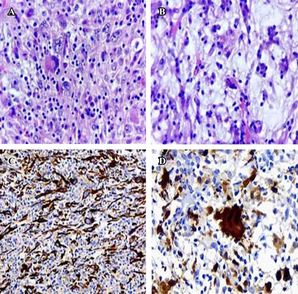 En lo referente a la inmunohistoquímica, observamos particularidades en nuestro caso, ya que difieren con los hallazgos más frecuentes descritos en la literatura; no obstante, existe una pequeña proporción de casos con reactividad positiva a S-100 y desmina.3,4,15,16 Estos hallazgos atípicos podrían ser el resultado de la variabilidad histológica presente en este tipo de neoplasia, la cual puede influir en la expresión variada de los marcadores inmunohistoquímicos, dando como resultado una expresión heterogénea entre los casos.
