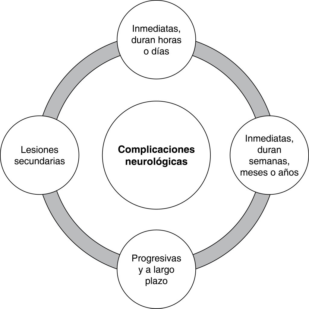 LAS COMPLICACIONES NEUROLÓGICAS PUEDEN DIVIDIRSE EN CUATRO CATEGORÍAS DEPENDIENDO DEL INICIO DE LOS SÍNTOMAS (FIGURA 4)