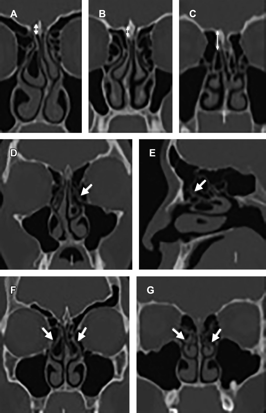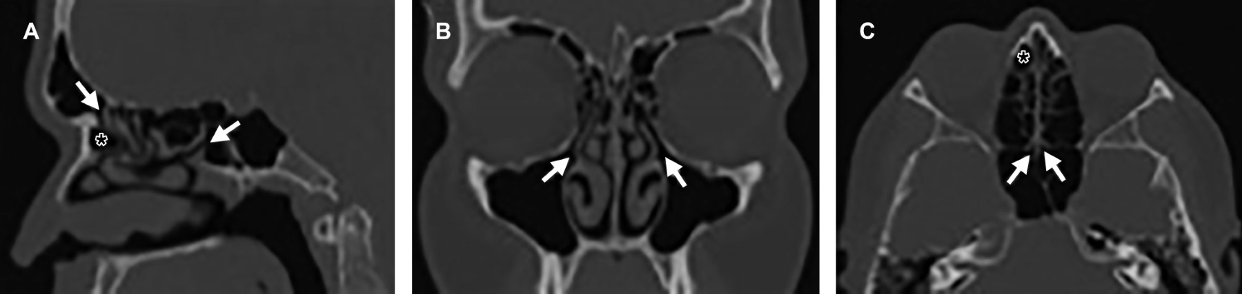 En 2016 la Sociedad Radiológica de Norteamérica (RSNA por sus siglas en inglés) propuso el acrónimo CLOSE en consenso con otorrinolaringólogos, donde se describen múltiples elementos que hay que evaluar y reportar.3 Con base en esto, se propuso describir e identificar la prevalencia de las variantes anatómicas rinosinusales en una muestra representativa de población mexicana para así poder familiarizarnos y llegar a un consenso entre especialidades médicas en lo que respecta a los hallazgos tomográficos de interés en la valoración prequirúrgica de CEFS.