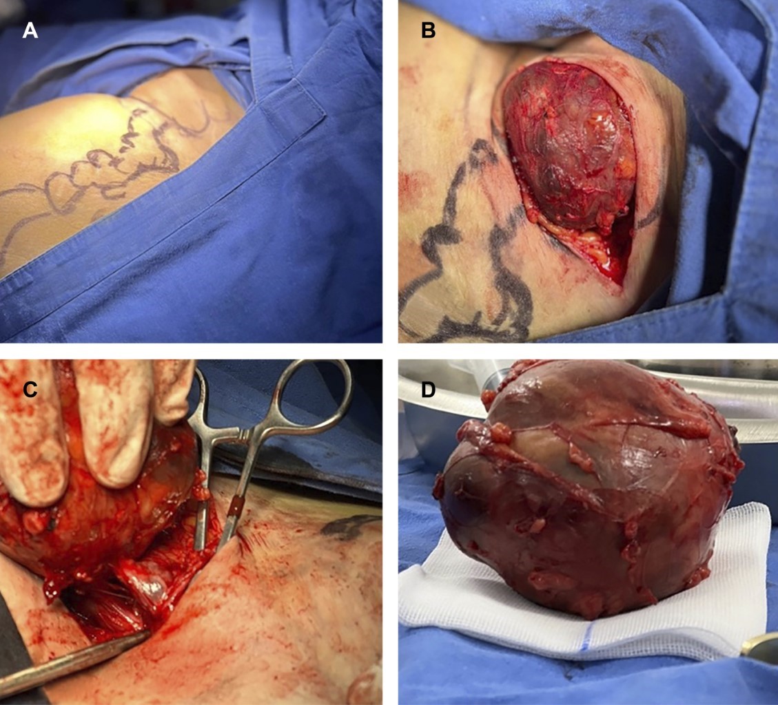 En el momento de la consulta se inicia anticoagulación hasta antes de su cirugía, se protocoliza quirúrgicamente por diámetro y riesgo de tromboembolia pulmonar realizando aneurismectomía tangencial con cierre primario, corroborando permeabilidad de vena femoral (Figura 2). La paciente egresa con anticoagulante a dosis profiláctica durante cuatro días, ya que el trombo se localizó sólo hasta USF sin extensión a sistema profundo, sin complicaciones durante el periodo postquirúrgico y citas de control sin complicaciones.