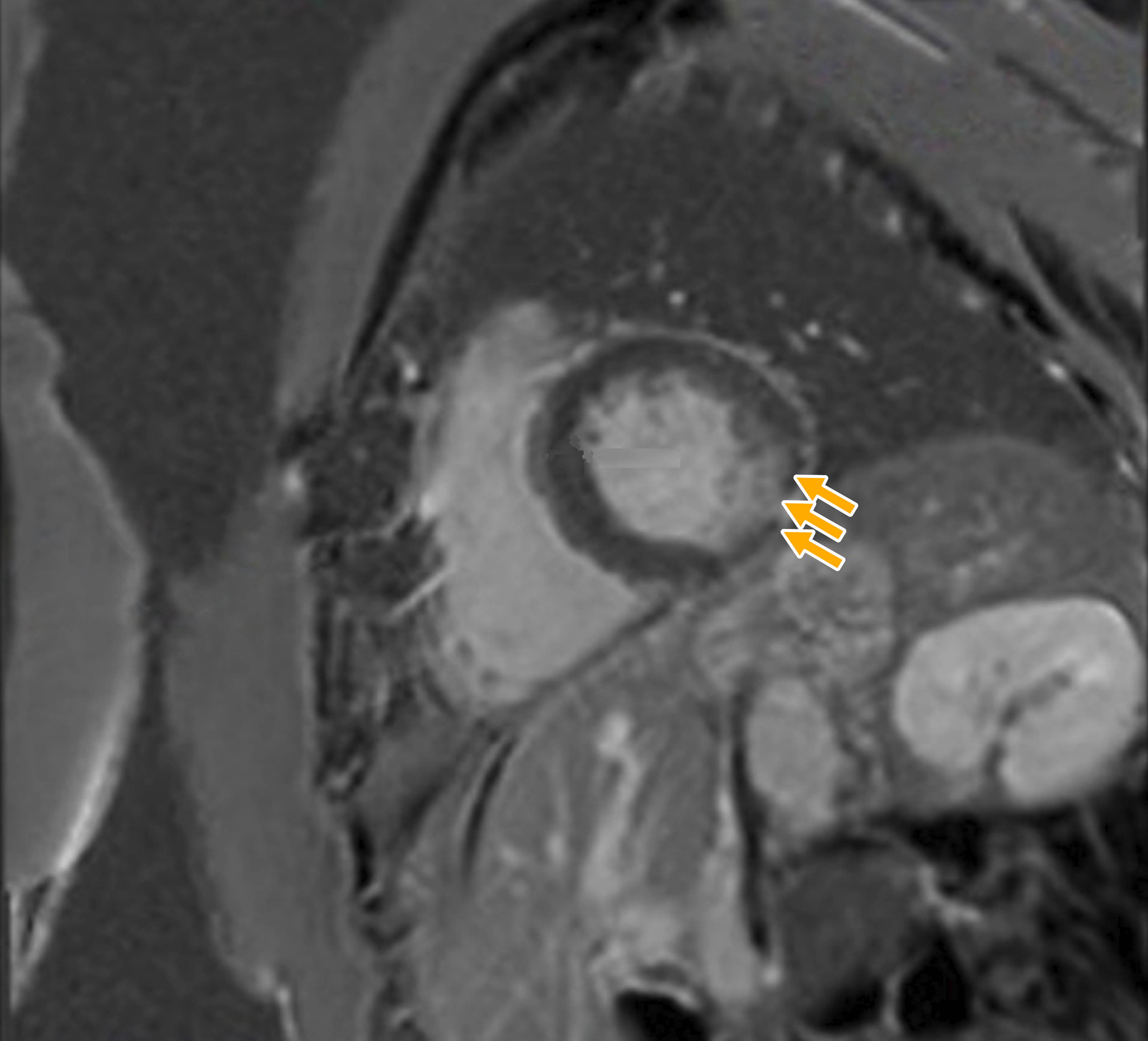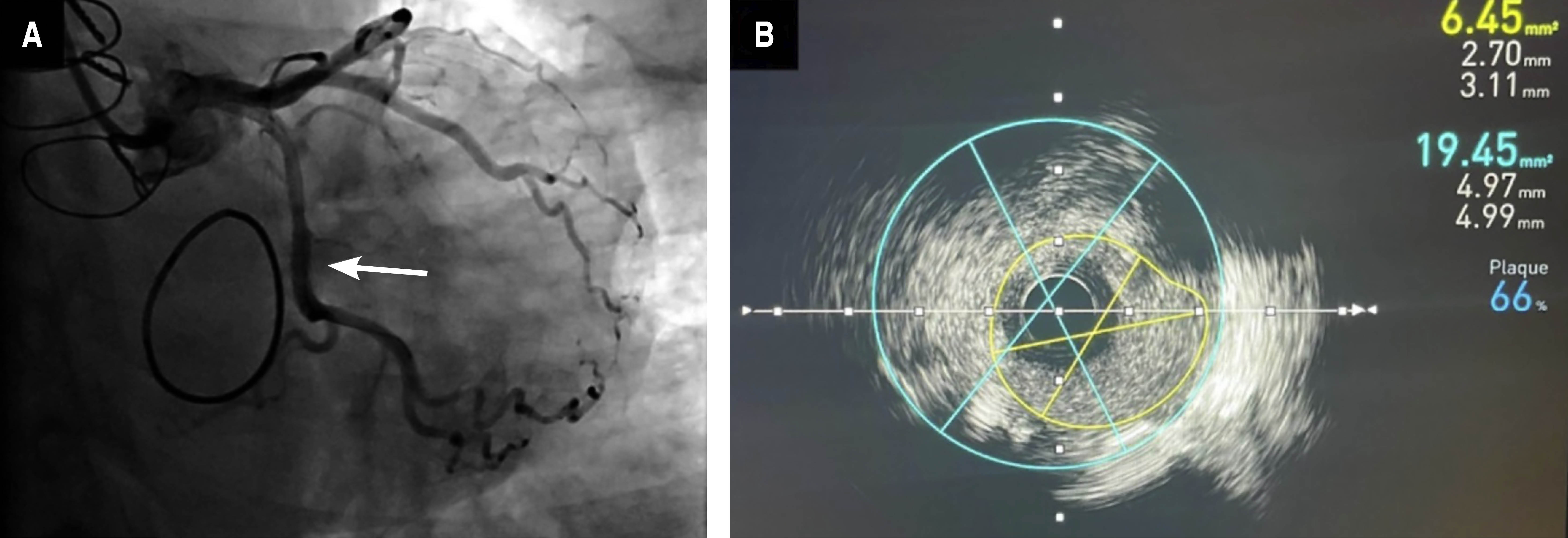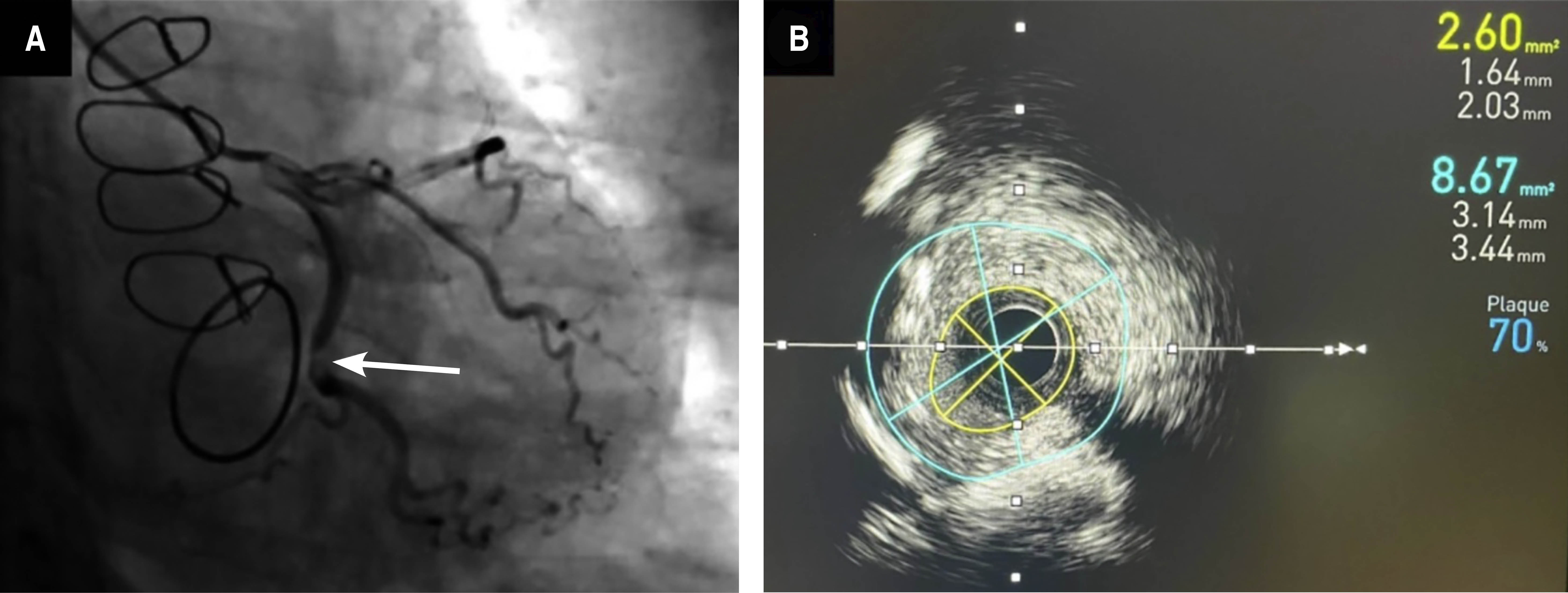 Introducción: las complicaciones agudas son frecuentes tras una sustitución o anuloplastia de la Válvula Mitral (VM). La isquemia inducida por la estenosis de la Arteria Circunfleja (ACx) causada por las suturas de la anuloplastia de la VM es la complicación aguda más frecuente. Presentación del caso: una mujer de 69 años con anuloplastia de la VM realizada con éxito cinco años previos se presentó con una historia de cuatro meses de dolor precordial opresivo al esfuerzo. Un ecocardiograma de esfuerzo mostró isquemia e hipocinesia de la pared inferolateral. La angiografía coronaria por tomografía computarizada reveló estenosis extrínseca en el tercio medio de la ACx, cerca del anillo de anuloplastia, en consonancia con los hallazgos de la angiografía coronaria. La resonancia magnética cardiaca demostró hipocinesia de la pared inferolateral y necrosis transmural de la pared inferolateral basal. Se realizó intervención coronaria percutánea con Ultrasonido Intravascular (IVUS) que mostró la estenosis. Realizamos angioplastia y colocación de stent con IVUS post-stent que mostró una adecuada aposición. El paciente fue dado de alta dos días después con tratamiento médico óptimo. La estenosis crónica de la ACx tras anuloplastia de la VM es extremadamente rara, con sólo cuatro casos descritos en la literatura. Conclusión: un enfoque multimodal, que incluye el uso de IVUS, puede ayudar a identificar el mecanismo de isquemia de una oclusión crónica de la ACx y en la toma de decisiones clínicas para un abordaje apropiado.REFERENCIAS (EN ESTE ARTÍCULO)