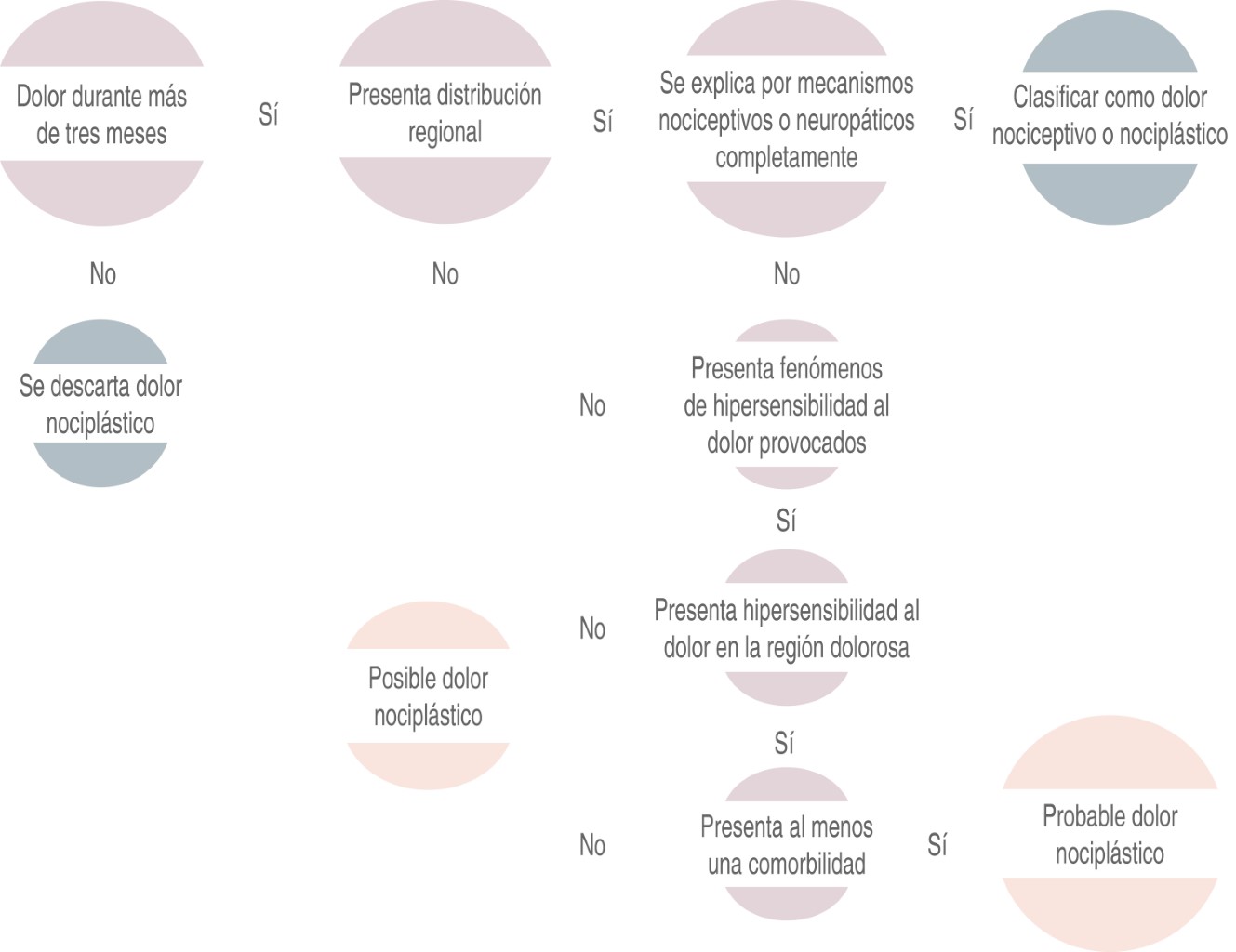 En el año 2017, la Asociación Internacional para el Estudio del Dolor (IASP, por sus siglas en inglés) introdujo una nueva categorización para el dolor crónico, denominándolo "dolor nociplástico". Las patologías asociadas a este tipo de dolor se distinguen por una disfunción en la nocicepción —la habilidad del sistema nervioso para detectar y reaccionar ante el dolor—, en ausencia de un estímulo nocivo evidente que explique la intensidad del dolor percibido(1). La IASP definió criterios específicos para el diagnóstico de dolor nociplástico en el año 2021, los cuales se detallan en la Tabla 1.