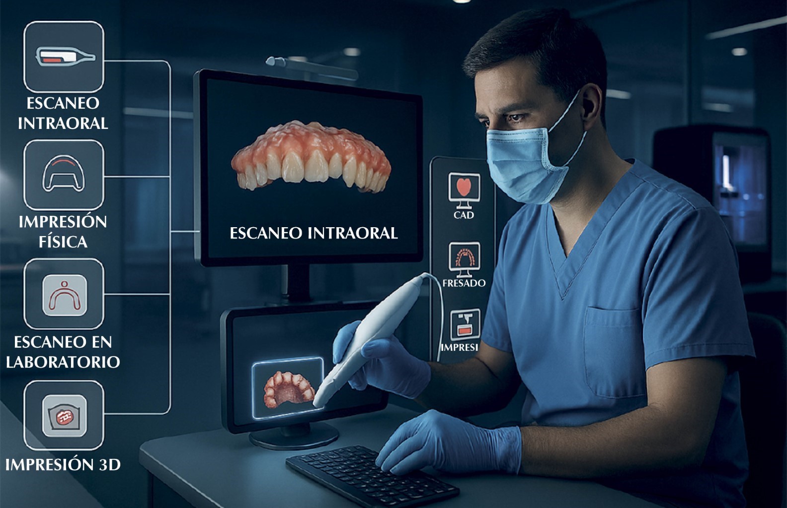 En los últimos años, el campo de la odontología ha experimentado una transformación significativa con la integración de las tecnologías digitales en diversos aspectos de la práctica odontológica. La odontología digital abarca una amplia gama de tecnologías y técnicas, incluyendo las posibilidades y el funcionamiento de diferentes sistemas de inspección asistida por computadora o CAI (Computer Aided Inspection) para obtener imágenes 3D de dientes y estructuras anatómicas del paciente como base de los sistemas CAD/CAM. Esta inspección asistida puede emplear recursos como cámaras digitales y la tomografía axial computarizada TAC o CT-Scan. Muchos investigadores han presentado diversos enfoques para la medición tridimensional o 3D. La imagen tridimensional, los escáneres intraorales, los láseres faciales y el diseño, planeación y fabricación asistida por computadora (CAD/CAM) se han desarrollado ampliamente para restauraciones individuales, coronas, carillas, prótesis, incluso la cirugía guiada, entre otros.