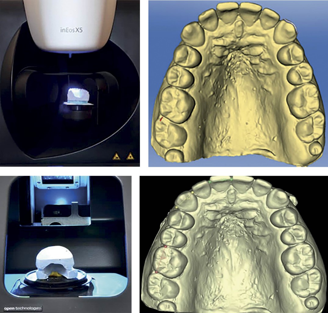 Una de las ventajas es que, al ya tener un modelo de yeso físico, al digitalizar la impresión es un poco más exacta. Por otra parte, una desventaja que se debe considerar es lo tardado y laborioso, ya que primero se tendrá que tomar una impresión convencional, y correr el modelo para posteriormente digitalizarlo (Figura 4).