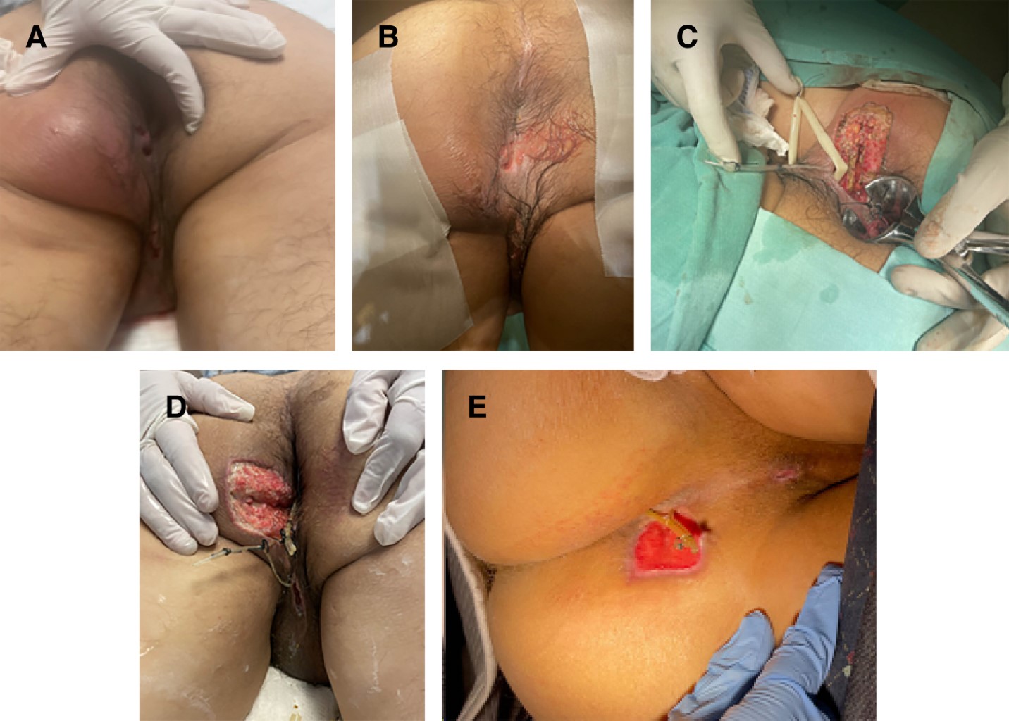 Hombre de 44 años de edad con antecedente de hipertensión arterial de tres años de evolución en tratamiento con Losartán 50 mg cada 12 horas; inicia su padecimiento actual con un año de evolución con presencia de prurito en región perianal seguido por aumento de volumen progresivo dolor e induración, con diagnóstico inicial de hemorroides externas, siendo manejado en primer nivel de atención con tratamiento sintomático, sin mejoría, drenaje espontáneo de absceso. Referido al servicio de colon y recto por persistencia de sintomatología. Encontrando al paciente con aumento de volumen en zona perianal e isquioanal izquierda decidiendo su manejo quirúrgico donde se realiza drenaje y desbridamiento de absceso, se encuentran tres conductos fistulosos a nivel de fosa isquiorrectal, isquioanal e isquioperineal, como hallazgos al introducir el anoscopio se observa una mucosa rectal con cambios inflamatorios y sangrado, en "patrón de empedrado", se prosigue a localizar cripta y se drenan 10 mL de material purulento, los cuales se envían a cultivo, con resultado positivo a E. coli (Tabla 1), se localizan fístulas y se realiza desbridamiento de fosa isquiorrectal, se colocan dos setones con sonda silastic de 5 fr en conducto fistuloso isquioanal e isquioperineal y un penrose de 5/16 en fístula perineal. Se ingresa al servicio de cirugía y se toman laboratoriales iniciales 14/05/24: glucosa 97, nitrógeno ureico (BUN) 12, urea 25.7, Creatinina (Cr) 1.10, Na 138, K 3.8, Cl 105, P 4.8, Mg 1.8, Ca 8.7, Hemoglobina (Hg) 12.5, hematocrito 38.8, plaquetas 308, leucocitos 10, neutrófilos 69, tiempo de Protrombina (TP) 14, tiempo de tromboplastina parcial (TTP) 34, índice internacional normalizado (INR) 1.27, y se inicia con antibioticoterapia a base de ceftriaxona y metronidazol.