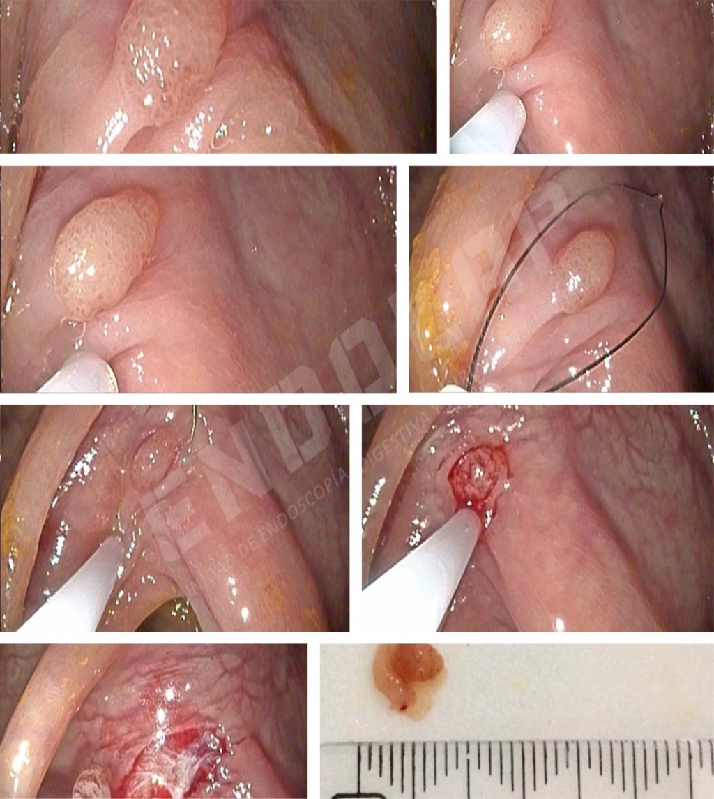 La gran mayoría de las lesiones halladas en la práctica diaria corresponden a pólipos pequeños o diminutos menores a 10 mm de diámetro y ellas pueden ser exitosamente removidas con la técnica de polipectomía con asa fría (cold snare polypectomy).