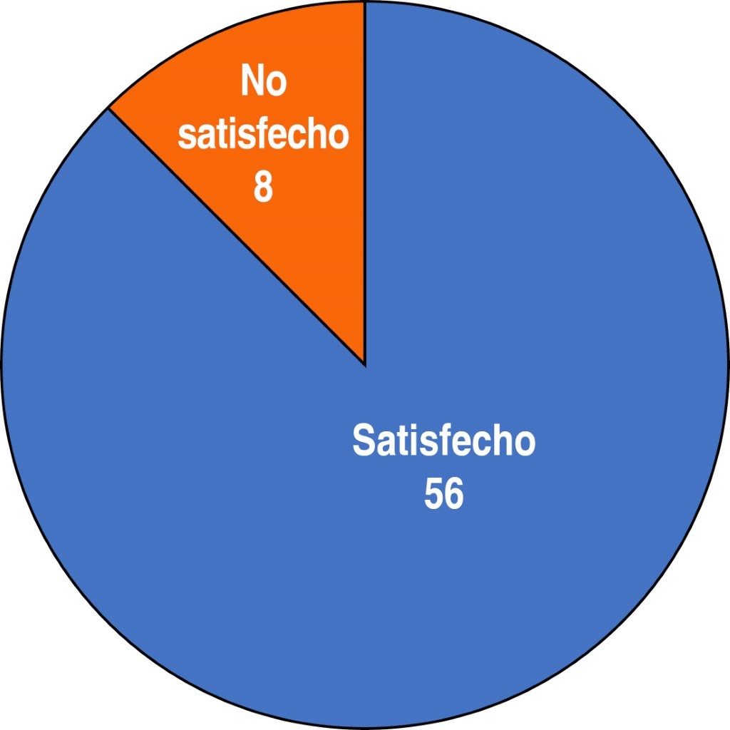 Al momento de evaluar la satisfacción postoperatoria, de los 64 casos tratados, 56 se mostraron satisfechos con los resultados y el estado funcional y estético; ocho de ellos manifestaron inconformidad con el estado postoperatorio (Figura 7).