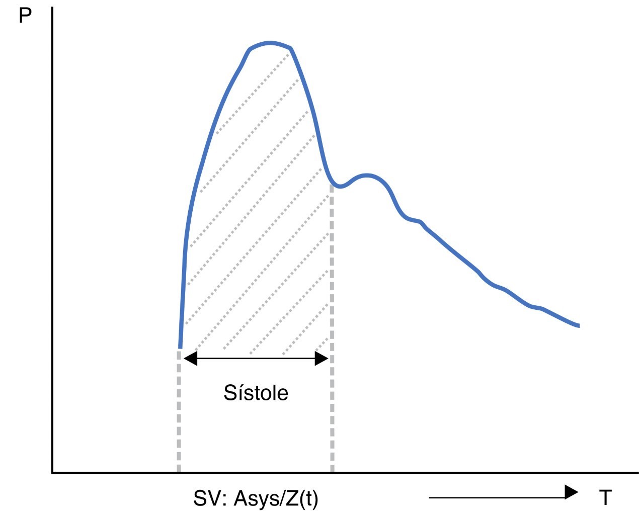 Hace más de 100 años. Otto Frank describió que a través del análisis de la onda de presión arterial podríamos ser capaces de estimar el VS, obteniendo de una manera más fidedigna información del gasto cardiaco; proponiendo que el VS era directamente proporcional al área de la porción sistólica de la onda de presión arterial pero inversamente proporcional a un elemento que el denomino Z (Figura 1), una variable en función del tiempo, la cual conocemos actualmente como impedancia arterial (Z).