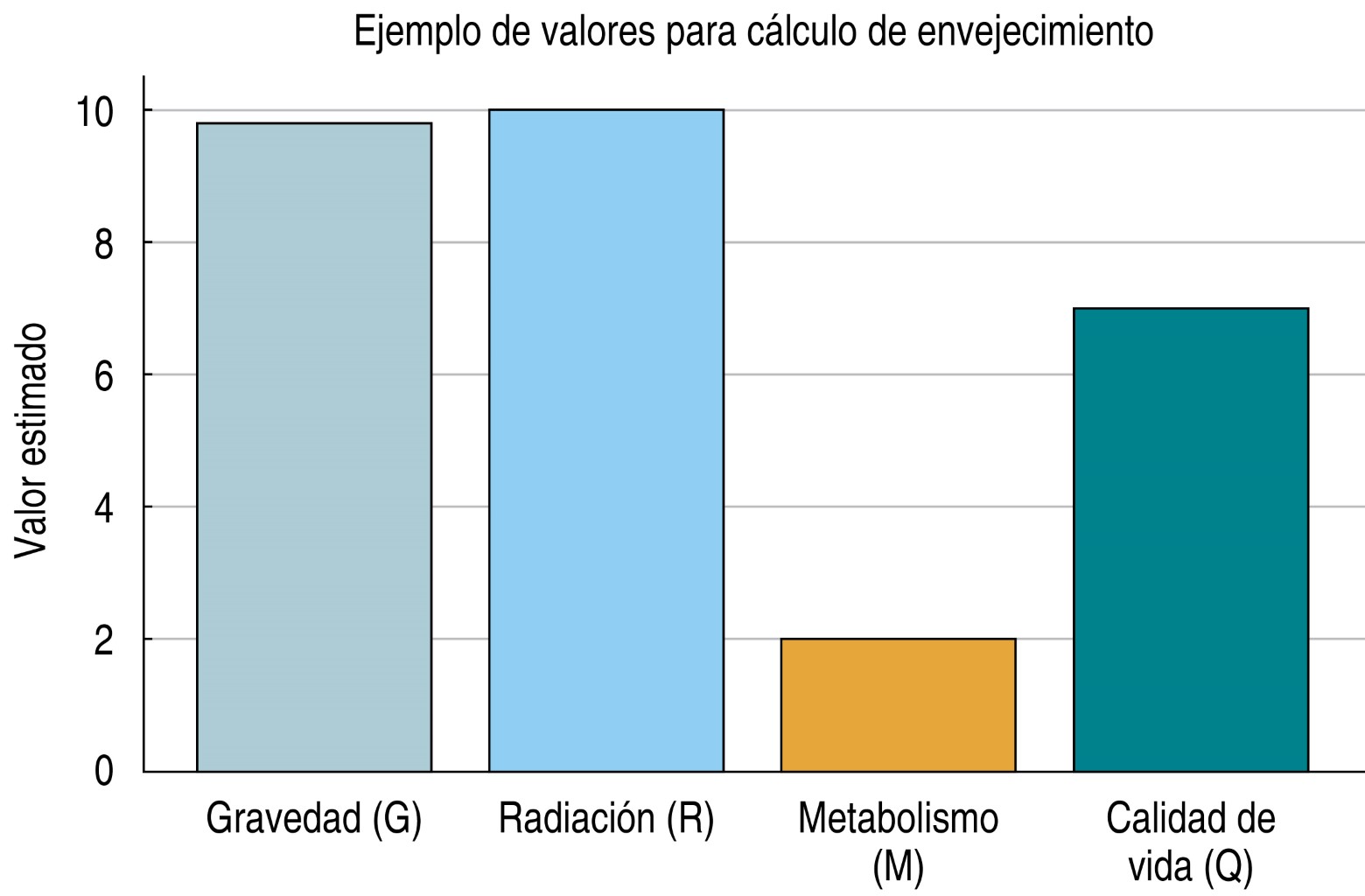 Las cuatro variables consideradas en nuestro modelo: gravedad terrestre, radiación solar, metabolismo celular y calidad de vida, se configuran con base en una combinación de valores constantes, evidencia científica y parámetros clínicos observables (Tabla 1 y Figura 1).