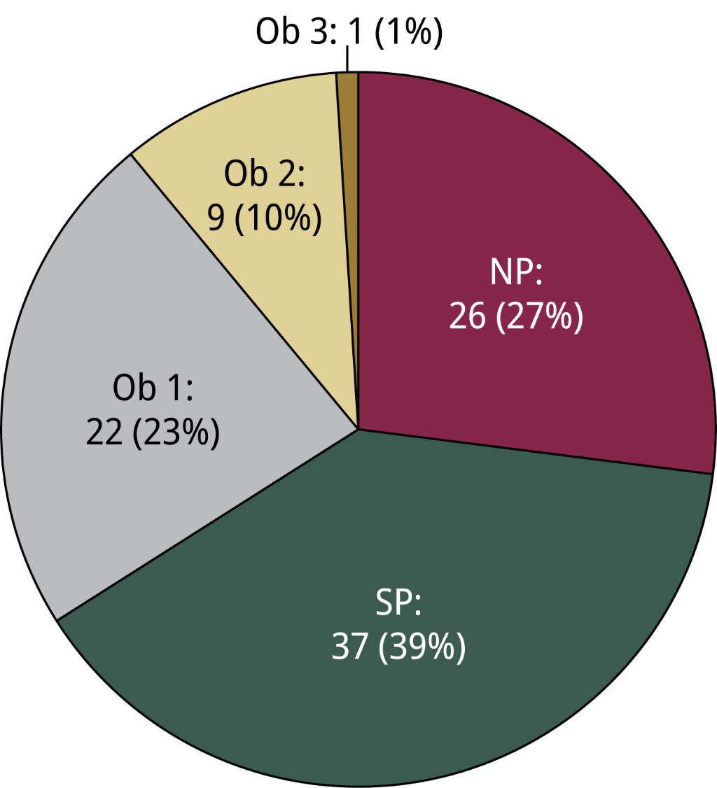 El riesgo de desarrollar DM2 en los próximos 10 años se evaluó mediante la prueba de Findrisk. Los resultados obtenidos fueron: 10 (10%) con riesgo bajo, 29 (31%) con riesgo ligeramente elevado, 19 (20%) con riesgo moderado, 34 (36%) con riesgo alto y tres (3%) con riesgo muy alto (Figura 2).