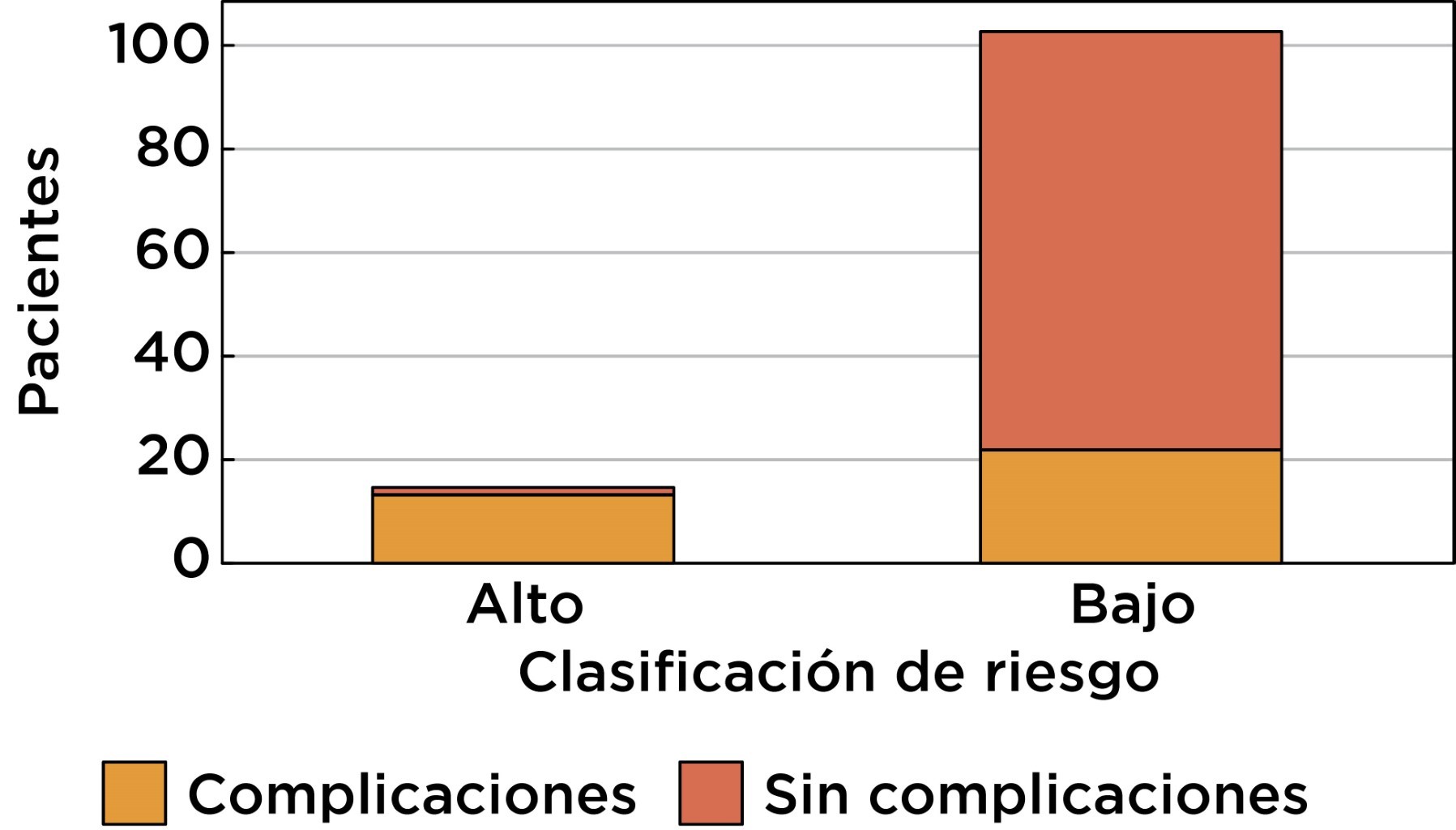 En el estudio se incluyeron 118 expedientes, de los cuales 15 fueron clasificados como alto riesgo (12.71%), mientras que 103 se clasificaron como bajo riesgo (87.28%).