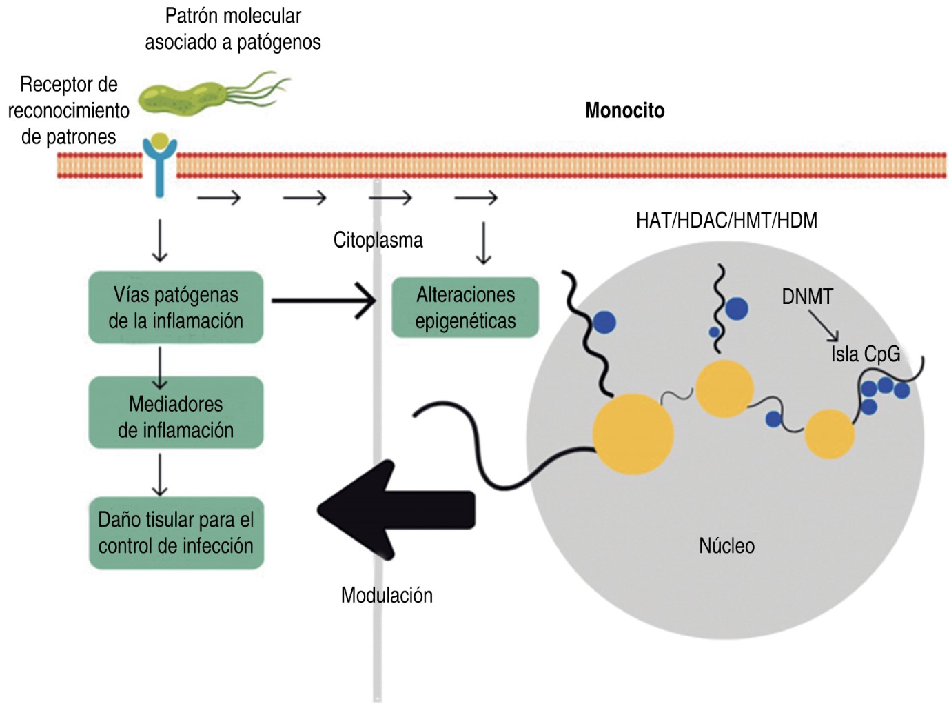 Se han identificado variaciones epigenéticas dependientes del sexo que se inician en el desarrollo embrionario y persisten durante toda la vida, influyendo en la expresión fenotípica individual. En el contexto de la sepsis, las modificaciones epigenéticas pueden alterar significativamente la respuesta del huésped tanto en las fases iniciales como tardías de la enfermedad. Además, los patógenos afectan la respuesta inmunitaria del huésped a través de mecanismos epigenéticos, tales como la producción de micro ARN, la acción de enzimas específicas sobre la cromatina del huésped y la manipulación de las enzimas epigenéticas del huésped, subrayando así la relevancia del epigenoma en estos procesos.18