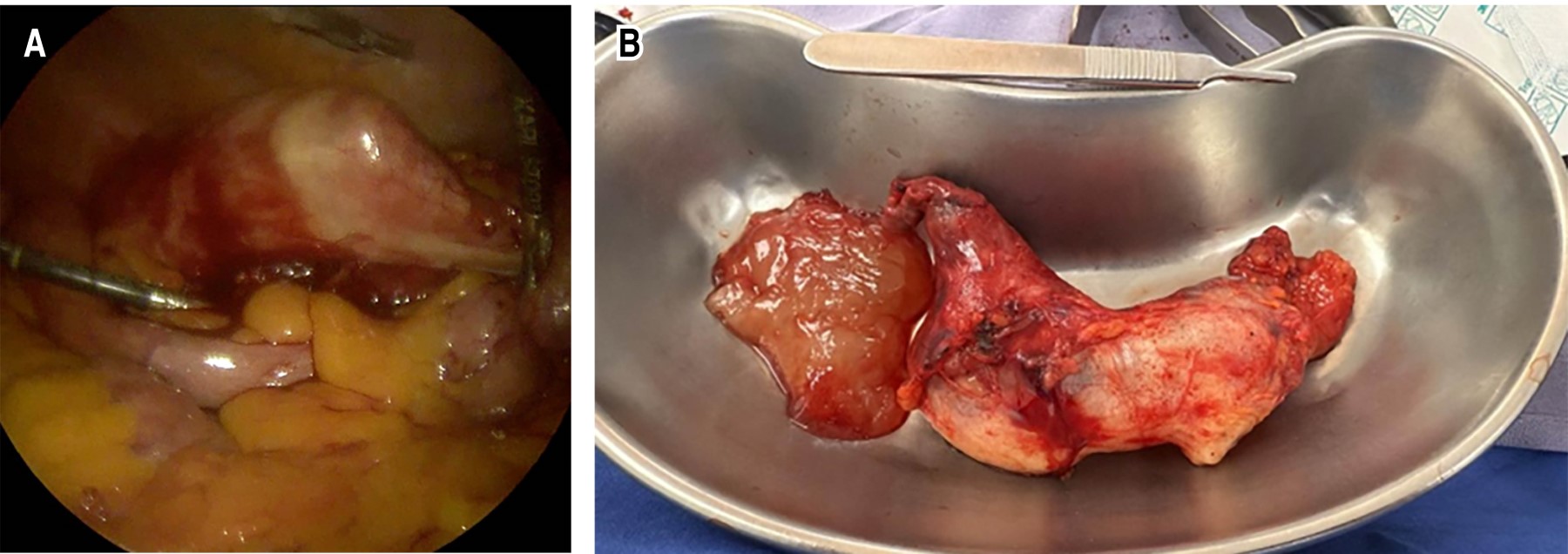 La elección del abordaje quirúrgico, ya sea laparoscópico o abierto, se determina considerando el tamaño de la neoplasia y la sospecha de malignidad. El objetivo es minimizar el riesgo de rotura y diseminación de moco, y asegurar una resección oncológica adecuada. Aunque no existen estudios comparativos directos, el abordaje laparoscópico puede ser una opción viable en pacientes seleccionados sin evidencia de rotura o diseminación, siempre y cuando se considere la experiencia del cirujano y las condiciones clínicas del paciente.15 Durante la intervención, se recomienda colocar compresas en la vecindad de la región apendicular. Esta medida preventiva puede ayudar a contener cualquier derrame de moco en caso de rotura, disminuyendo así el riesgo de diseminación peritoneal y la consiguiente formación de pseudomixoma peritoneal.