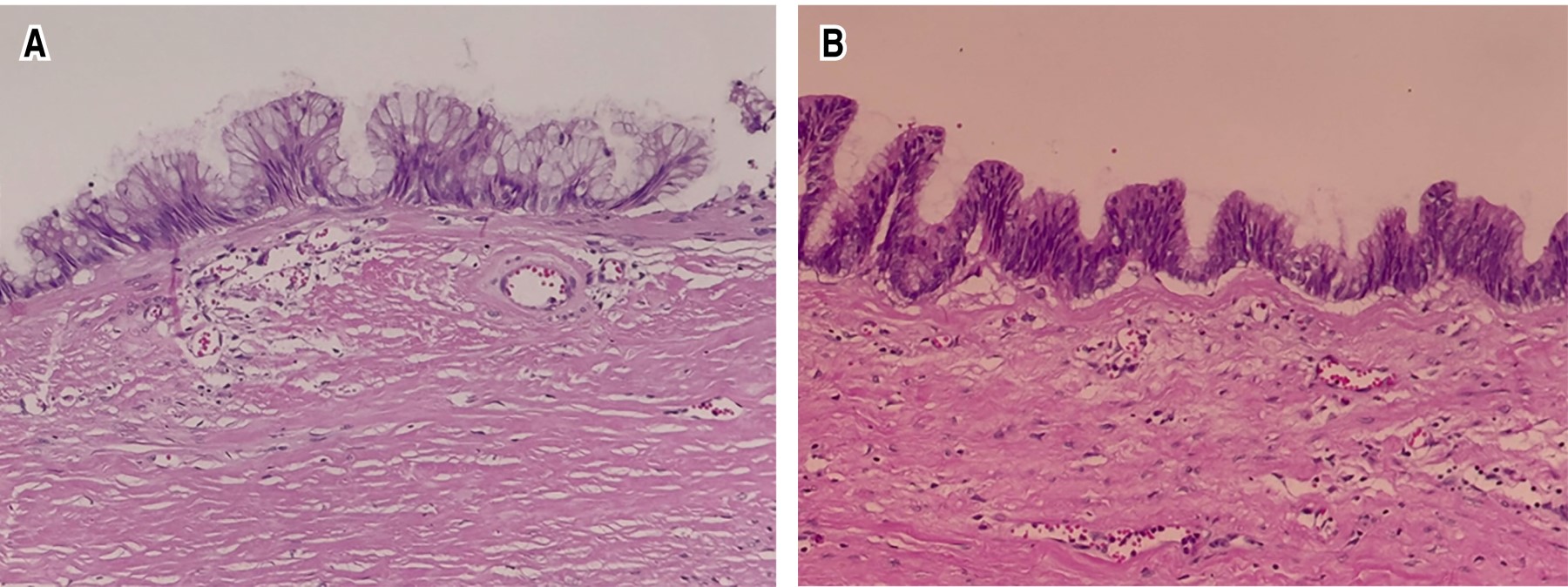 En la actualidad, el término mucocele está en desuso y se prefiere el término de neoplasias mucinosas apendiculares. La clasificación de la Organización Mundial de la Salud de 2019 estratifica estas lesiones en pólipos serrados, pólipos hiperplásicos, neoplasias mucinosas apendiculares de bajo grado y neoplasias mucinosas apendiculares de alto grado. Estas dos últimas corresponden a los antiguos cistoadenomas y adenocarcinomas mucinosos. La octava edición del Comité Americano Conjunto sobre el Cáncer (AJCC 8th Ed.) refina esta clasificación al introducir el concepto de neoplasia mucinosa apendicular de alto grado para lesiones con atipia citológica de alto grado pero sin invasión infiltrativa.8 Alternativamente, la clasificación de Pai y Longacre,9 los llama tumores mucinosos apendiculares y se dividen en cistoadenoma mucinoso, neoplasia mucinosa de potencial incierto maligno, neoplasia mucinosa de bajo potencial maligno y adenocarcinoma mucinoso.
