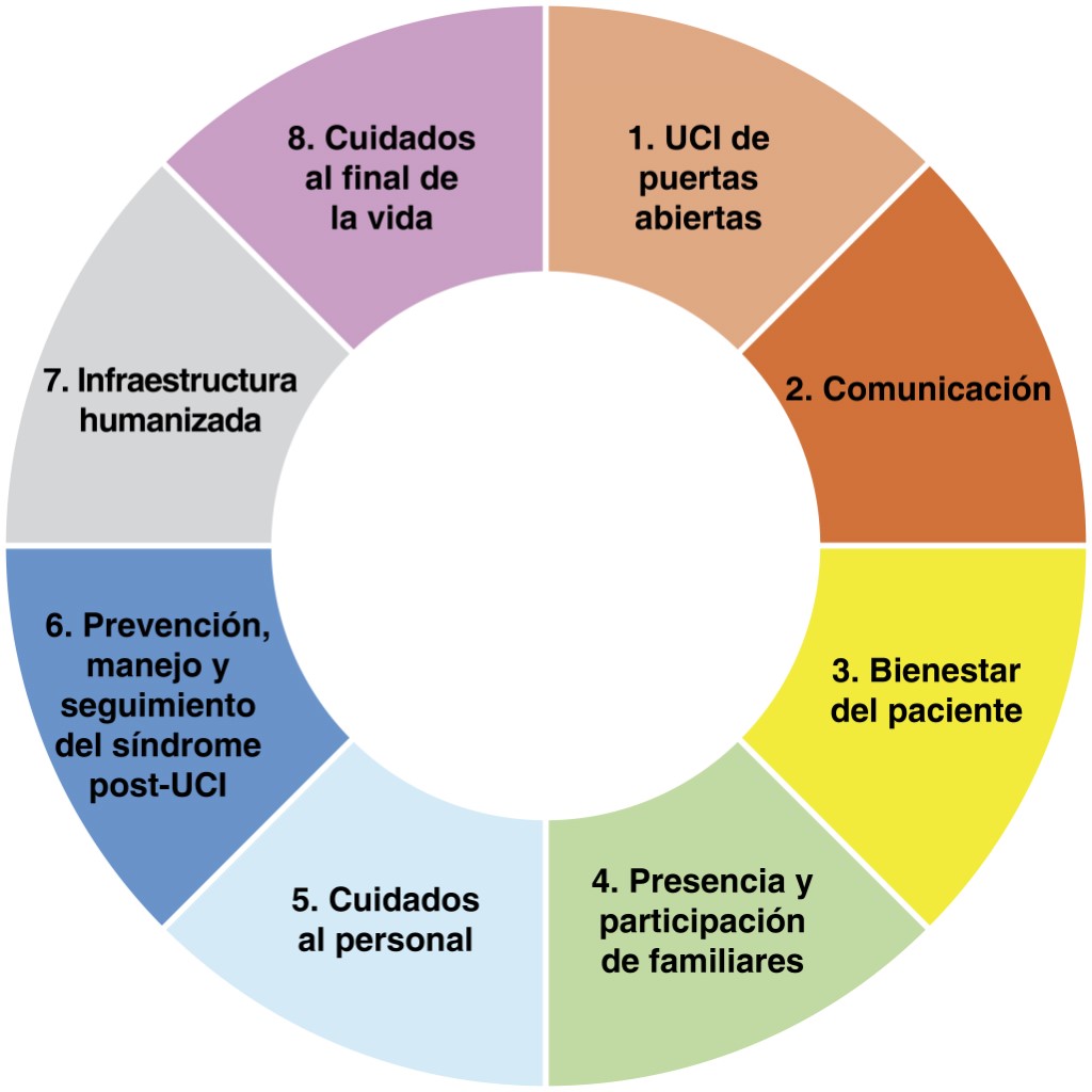 El proyecto UCI humanizada ha desarrollado diferentes líneas de investigación, teniendo excelentes resultados principalmente en satisfacción del paciente y el familiar o cuidador. Dentro de las líneas estratégicas y de investigación de este proyecto se puede visualizar a los cuidados al final de la vida como una de las estrategias a implementar en las UCI humanizadas (Figura 1).15