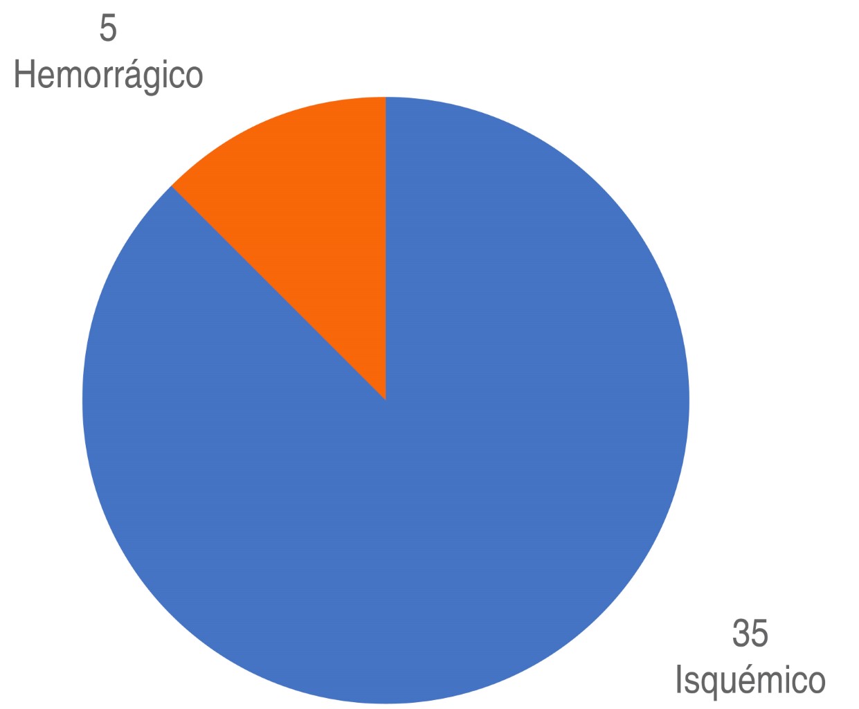 Como puede verse en la Figura 1, el tipo de AVC más frecuentemente observado fue el de tipo isquémico afectando a 35 pacientes, representando 87.5% de los casos y el cual es concordante con la etiología observada comúnmente en estos eventos.