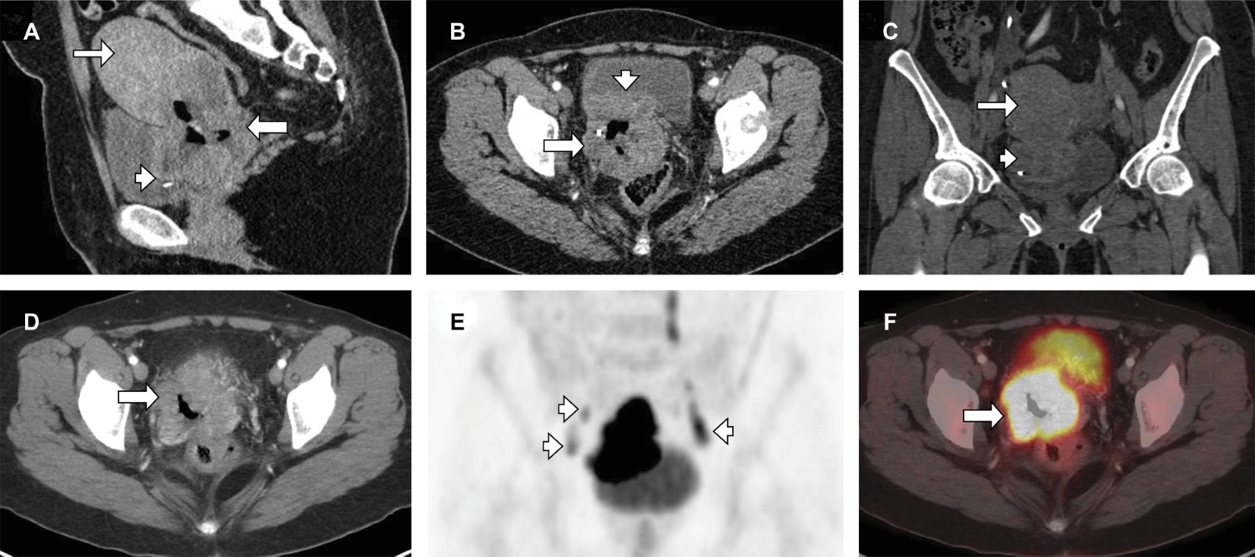 Paciente femenino de 39 años, sin antecedentes personales ni familiares relevantes, diagnosticada con carcinoma cervicouterino epidermoide hace seis meses; presenta datos de choque hemorrágico. En la exploración física dirigida, se identifica una tumoración ulcerada de 7 cm en el cuello uterino con invasión vaginal y sangrado activo. Los estudios de laboratorio e imagen muestran: hemoglobina (Hb) 5.9 y tumoración dependiente del cérvix con infiltración hacia la vejiga, estadio IV A (Figura 1). Dadas las opciones terapéuticas limitadas, se realiza una embolización de arterias uterinas (Figuras 2 y 3), que resultó exitosa en el control del sangrado.