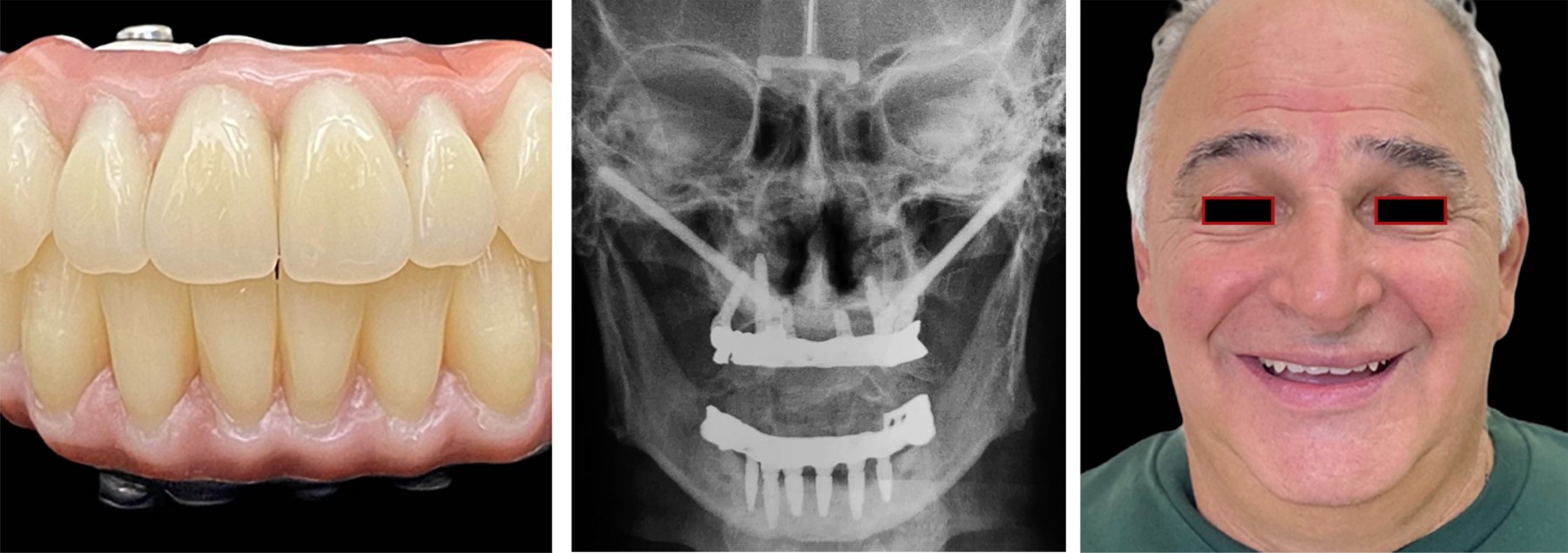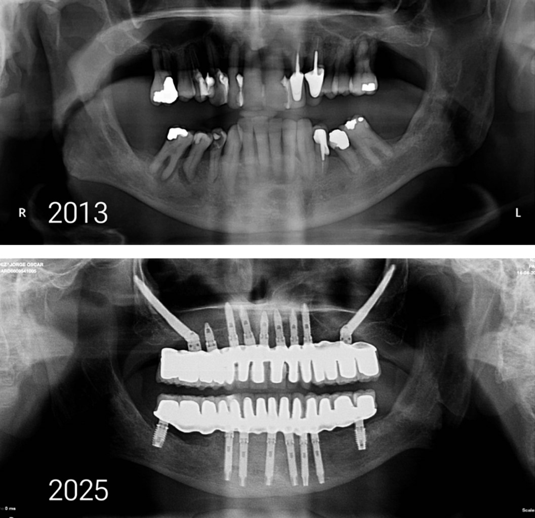 El caso clínico presentado respalda la eficacia de técnicas como la implantología cigomática exteriorizada y los implantes yuxtaóseos personalizados, en el marco de un tratamiento quirúrgico y protésico integral. A pesar de la aún limitada literatura sobre técnicas yuxtaóseas, la evidencia clínica acumulada justifica su inclusión en el arsenal terapéutico en casos de atrofia ósea extrema.