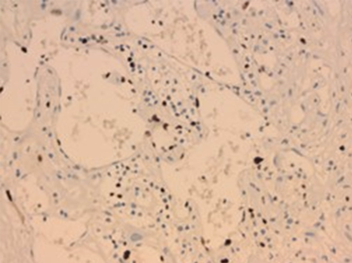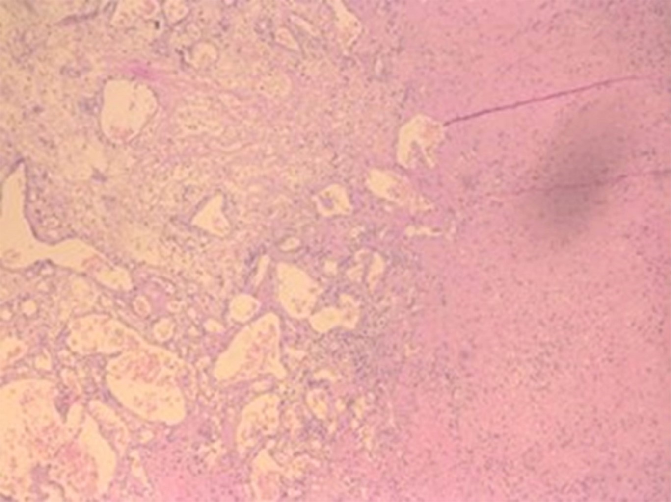 Se realiza biopsia incisional de lesión adyacente al diente 4.8 y unas semanas más tarde se confirma el diagnóstico histopatológico de granuloma piogénico (Figuras 1, 2 y 3). En ese momento se planifica exodoncia de los dientes 1.8, 3.8 y 4.8, junto con la exéresis completa de la lesión bajo anestesia general.