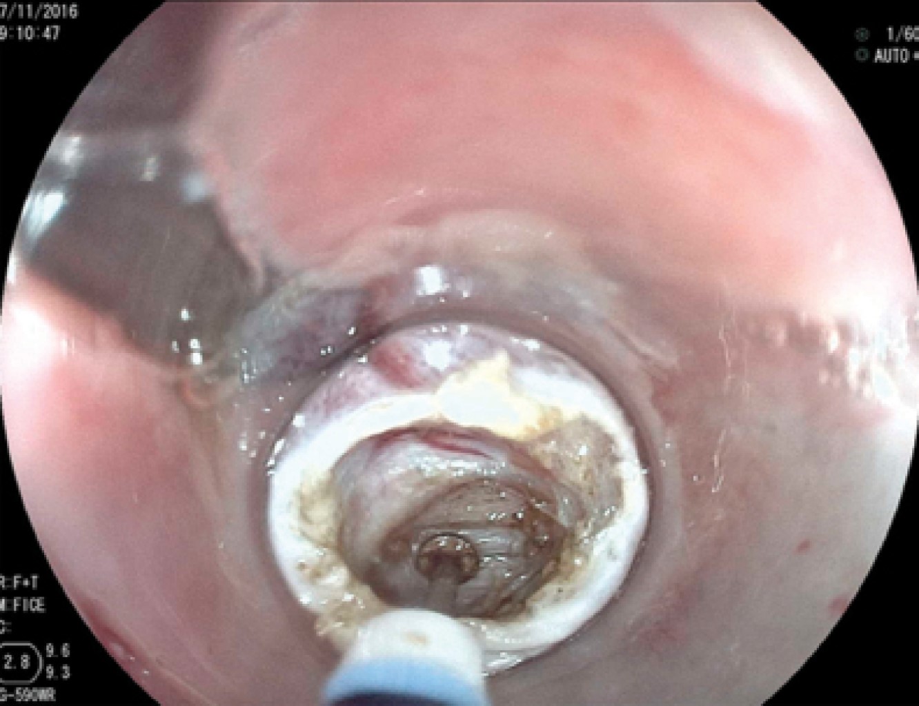 Técnica endoscópica: a todos los pacientes con firma de consentimiento informado, valoración cardiovascular y con ayuno mínimo de ocho horas se les realizó el procedimiento bajo sedación consciente intravenosa con monitorización continua, sin necesidad de intubación orotraqueal, siempre a cargo del médico anestesiólogo.