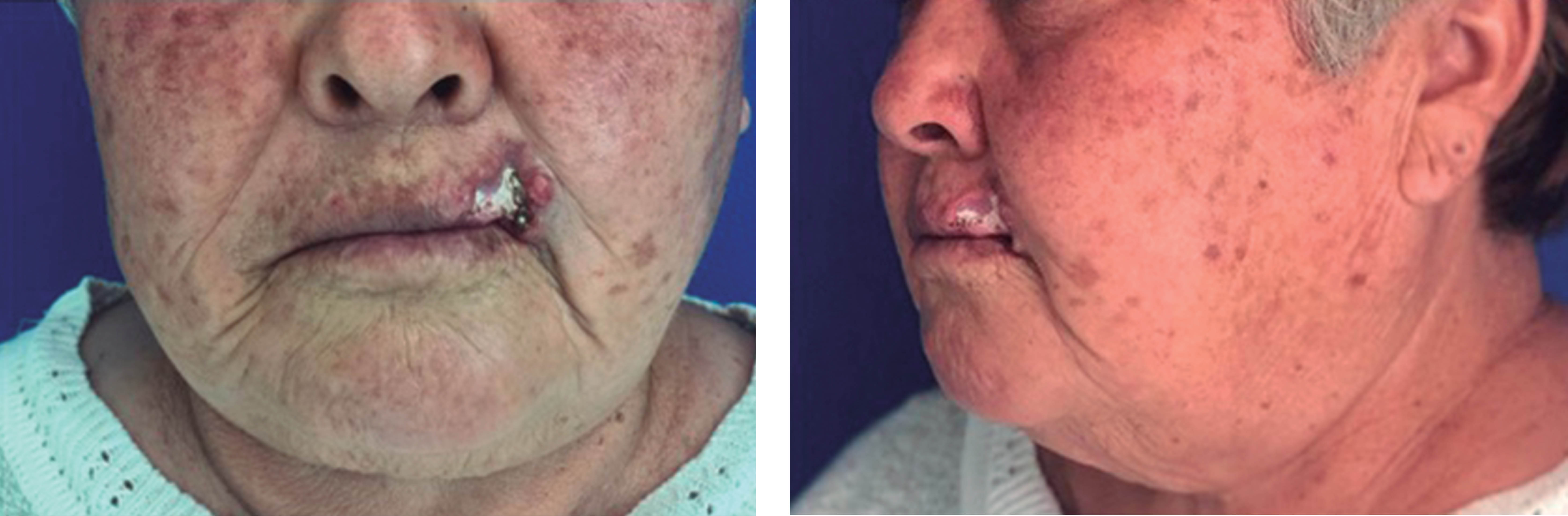 Ciertas afecciones como el cáncer, traumatismos y deformidades congénitas son las principales causas de dimorfismo labial que requieren reconstrucción.1 El carcinoma de células escamosas labiales (CEC) es una de las principales causas de defectos que deben reconstruirse; representa de 12 a 30% del cáncer de la cavidad oral y aumenta la proporción de incidencia en la población de edad avanzada. La mayoría de los tipos de cáncer está relacionada con los labios (95%) y el labio inferior está más frecuentemente involucrado en comparación con el labio superior (90%: 10%), lo que se asocia con un alto nivel de exposición a la radiación ultravioleta, radioterapia previa y condiciones precancerosas en general.2,6,7