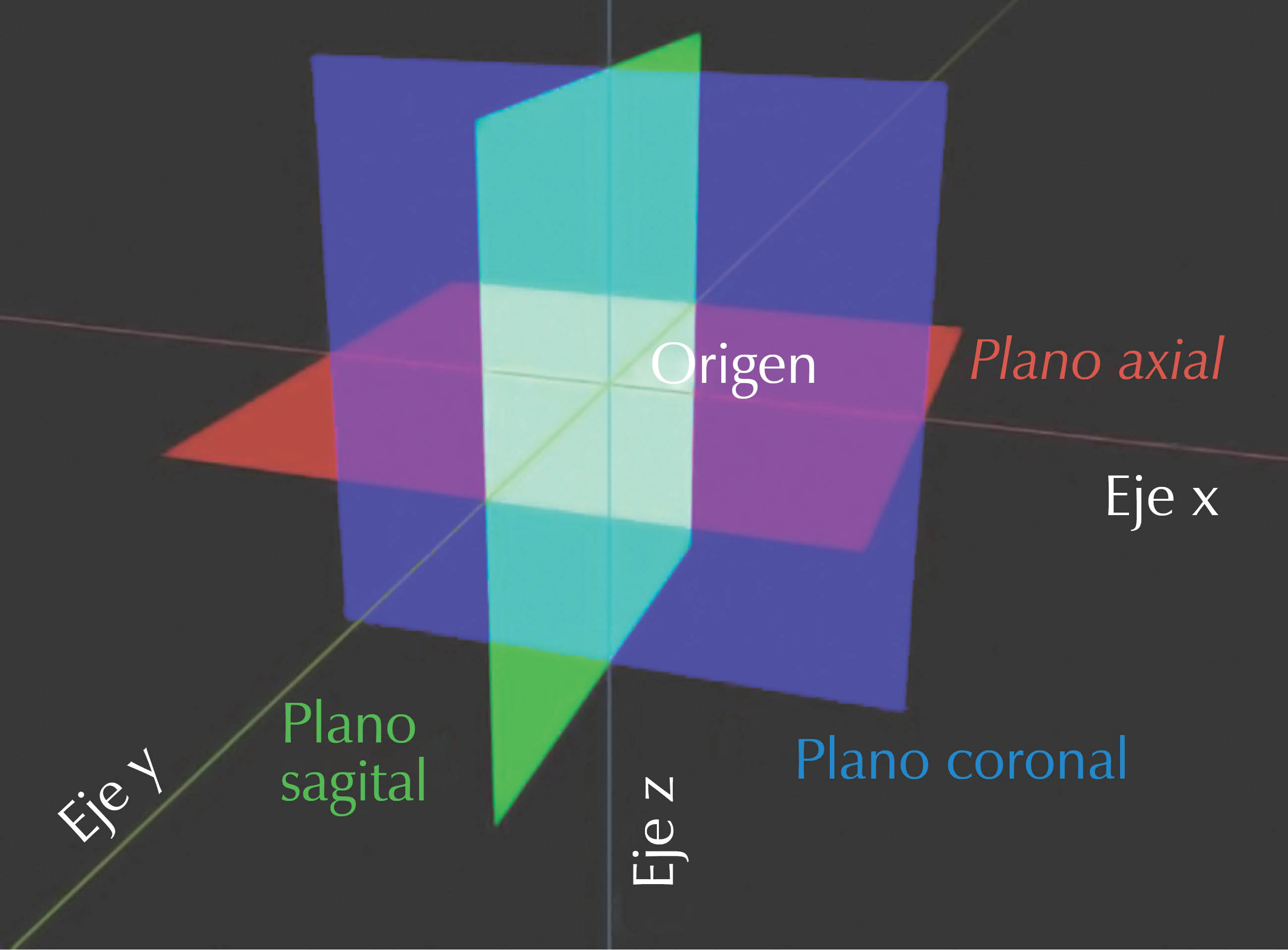 En la aplicación clínica los planos x, y, z, se convierten en los planos axial, coronal y sagital respectivamente. Existen dos métodos informados en la literatura para poder orientar toda la cabeza a estos planos: el primer método consiste en identificar puntos anatómicos clave, el segundo consiste en colocar la tomografía en "posición natural de la cabeza".3,16,17
