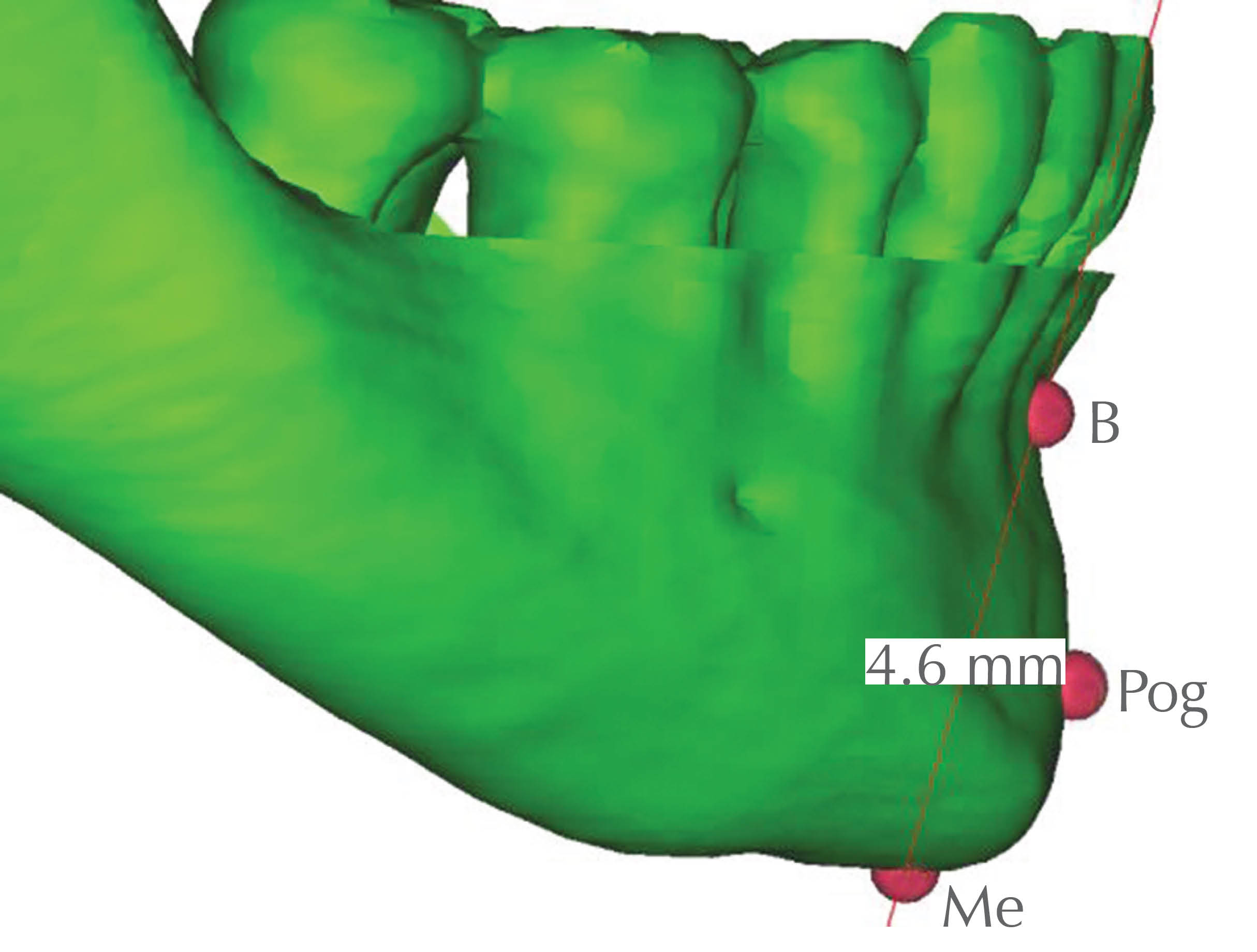 - 29. BMe-Pog: proyección del mentón; distancia entre la línea B-Me y el punto más anterior de la sínfisis (Pog). Medida perpendicular a la línea B-Me (Figura 34).