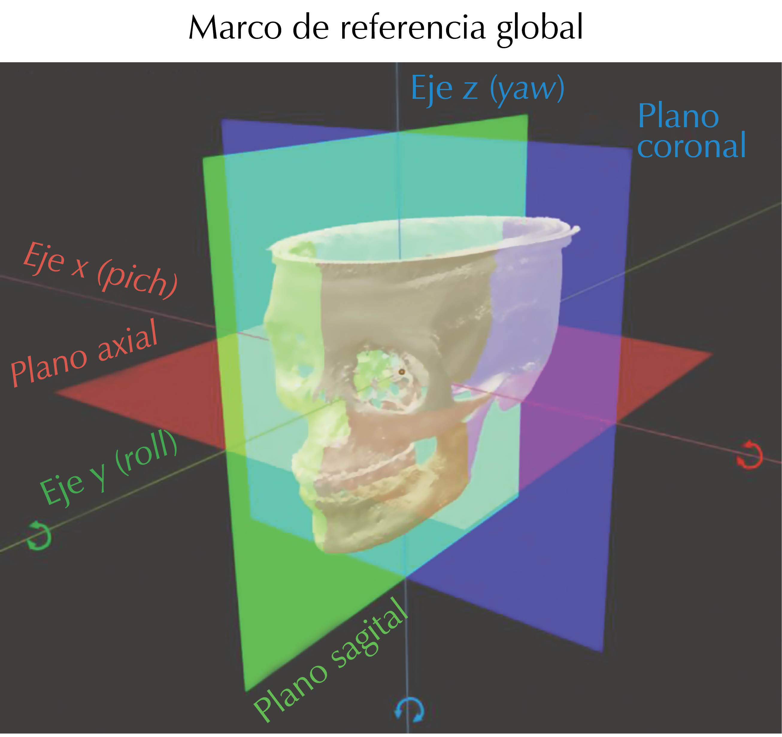 Este sistema de coordenadas se convierte en nuestro marco de referencia global, el cual abarca toda la cabeza y sirve para orientar la cabeza (Figuras 3 y 4).