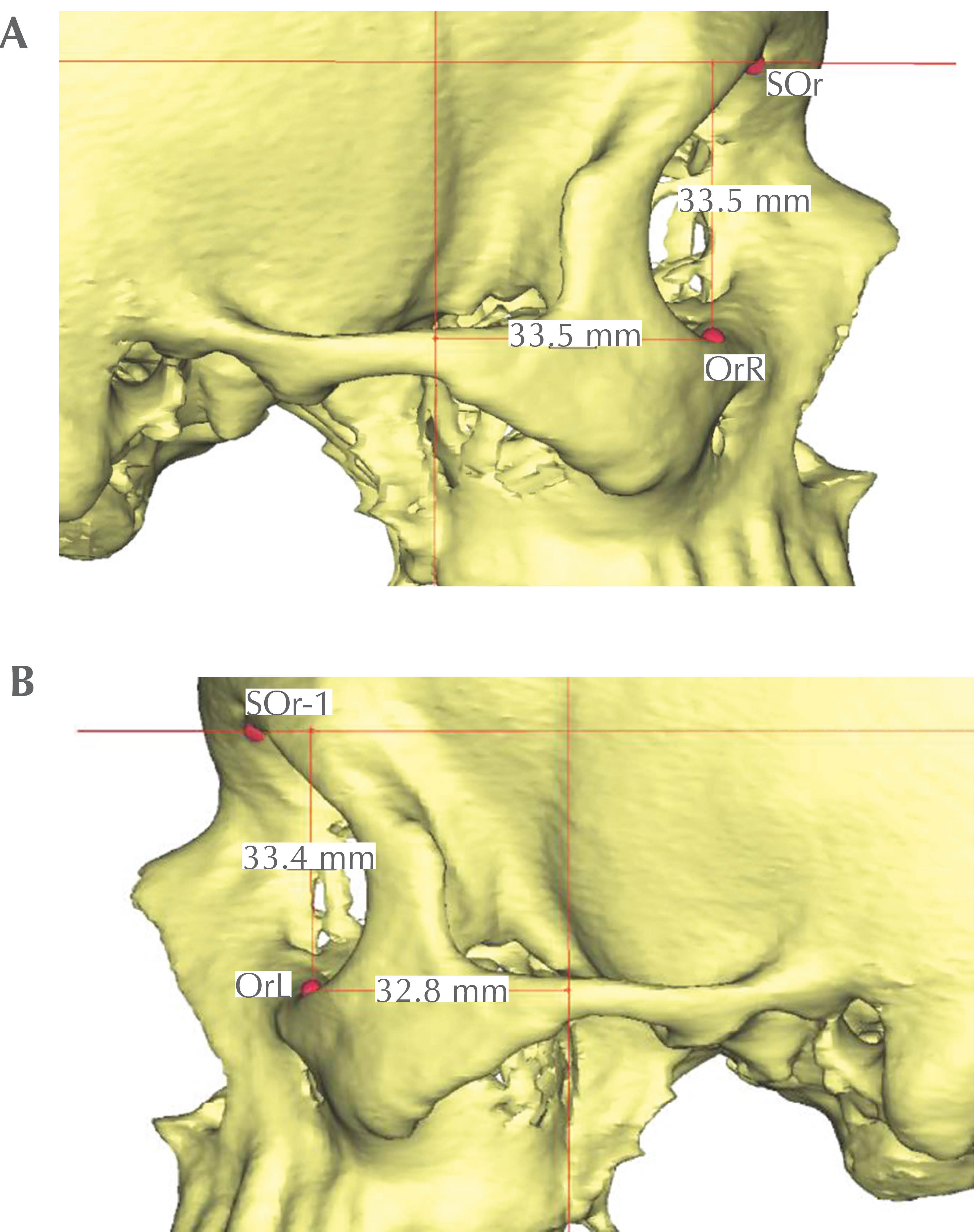 - 41. Or-VPt: proyección del reborde infraorbitario; distancia del punto más inferior del reborde orbitario inferior (Or) al plano vertical pterigoideo (VPt) (Figura 41A y B ).
