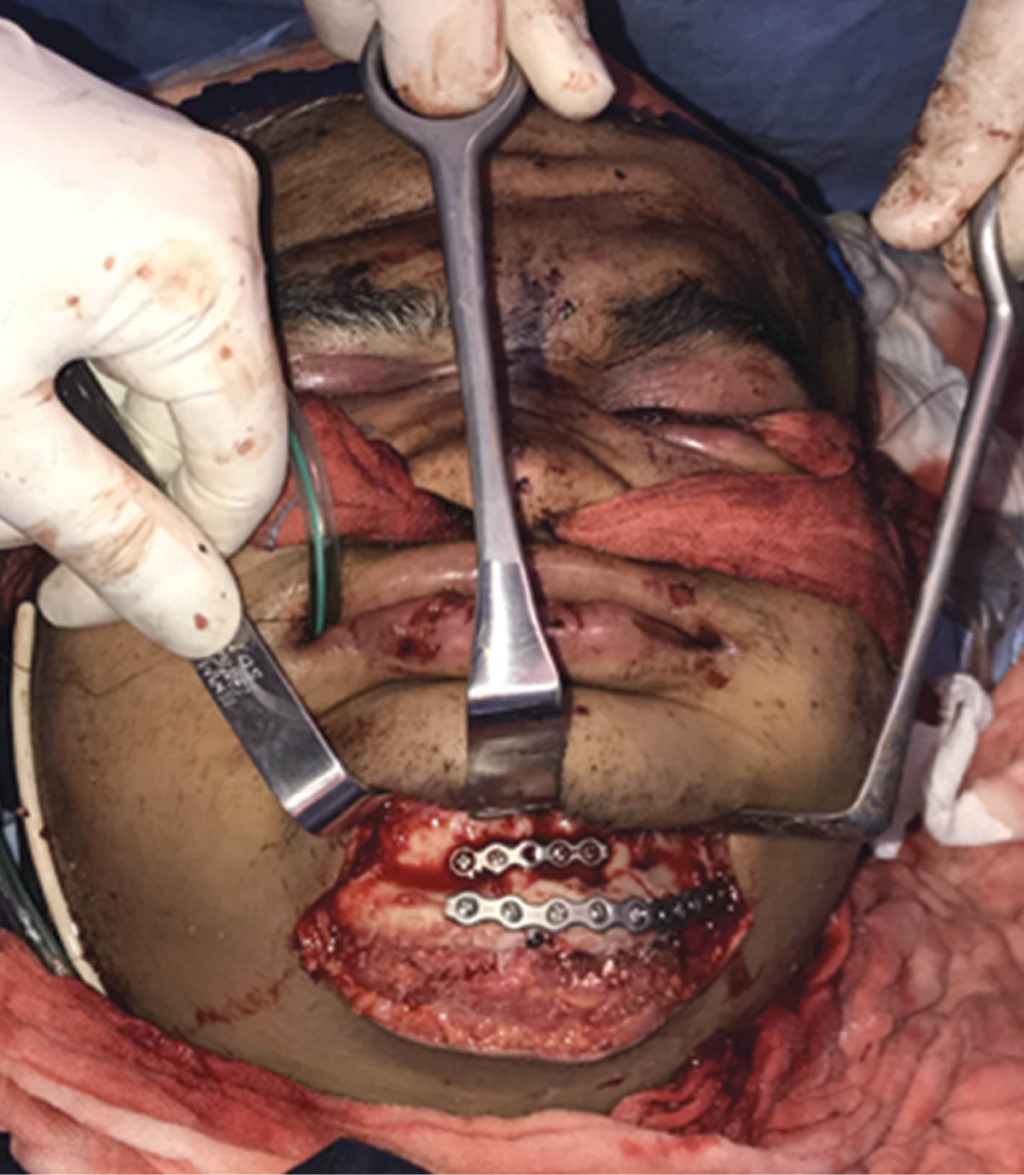 Una fractura panfacial es aquélla que involucra el tercio superior, medio e inferior de la cara.10 Su incidencia se encuentra entre 4 y 10% de todas las fracturas faciales. Normalmente es causada por traumatismos de alto impacto, tales como accidentes automovilísticos y heridas por armas de fuego. Hasta en 80% se encuentra en relación con fracturas condilares y en la mayoría de los casos tendrá segmentos conminutados y avulsionados. La tomografía computarizada es el estándar de oro para el diagnóstico en estudios de imagen. Se debe sospechar de lesiones cervicales y el mantenimiento de la vía aérea debe ser la prioridad. La traqueostomía se indica cuando es necesaria una intubación prolongada y cuando el complejo naso-órbito-etmoidal está involucrado, puesto que la intubación nasotraqueal sería difícil y peligrosa.11,12 El orden de tratamiento para la reducción y fijación de las fracturas puede ser de arriba a abajo, de adentro hacia afuera, de abajo hacia arriba o de afuera hacia adentro. Sin embargo, de acuerdo con la AOCMF, el orden exacto de tratamiento no es tan importante como un adecuado plan que permita la posición anatómica correcta de los segmentos faciales tomando como base la exposición, identificación y fijación de los contrafuertes faciales. De manera que se devuelva la anchura, altura y proyección facial.13