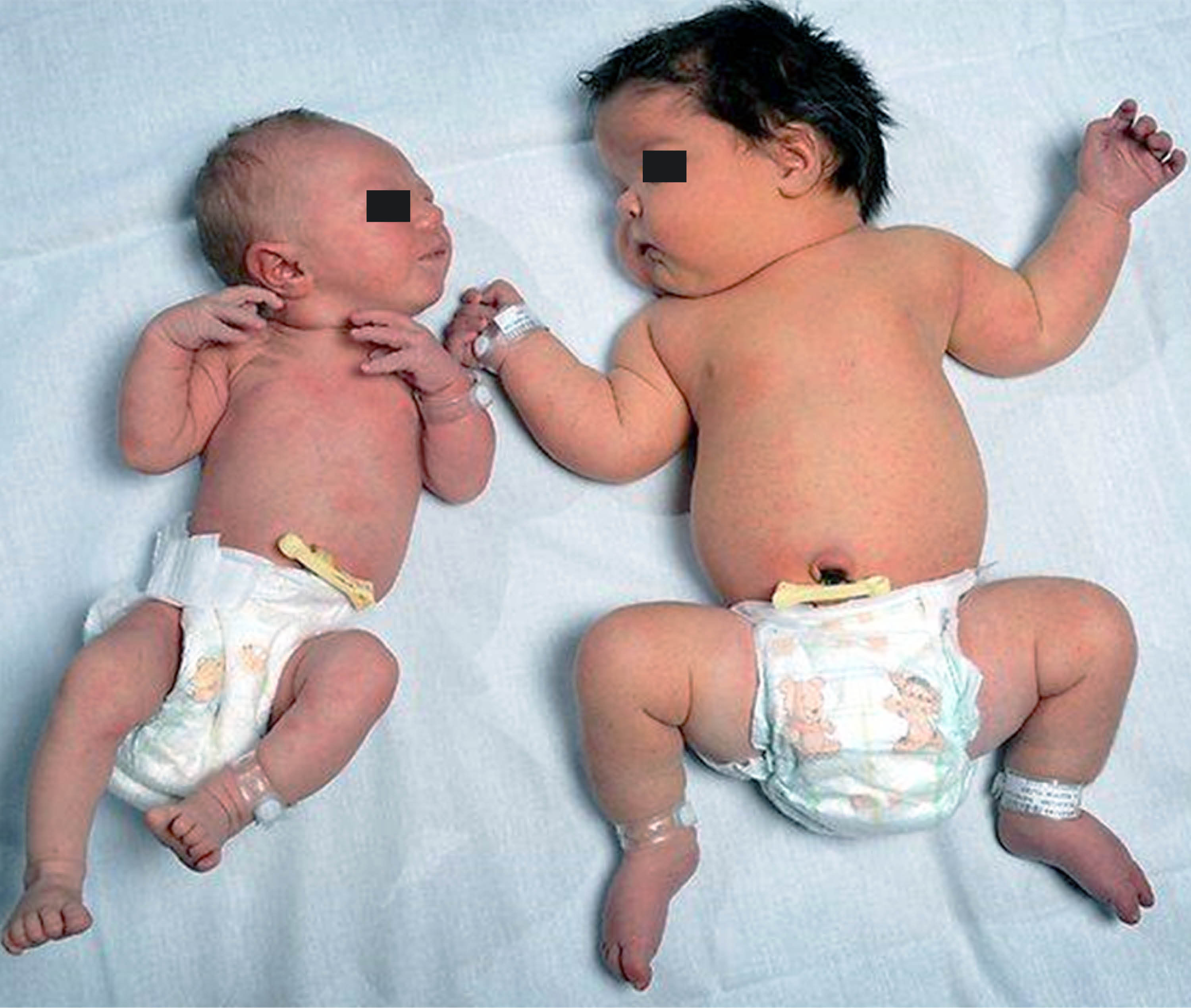 - • Diabetes mellitus (DM) pregestional o gestacional. Principalmente la DM insulinodependiente (los bebés de madres diabéticas tienen mayor incidencia de lesión relacionada con las características del tipo de cuerpo fetal y la macrosomía) en comparación con los lactantes macrosómicos, cuya madre era sana (sin diabetes).