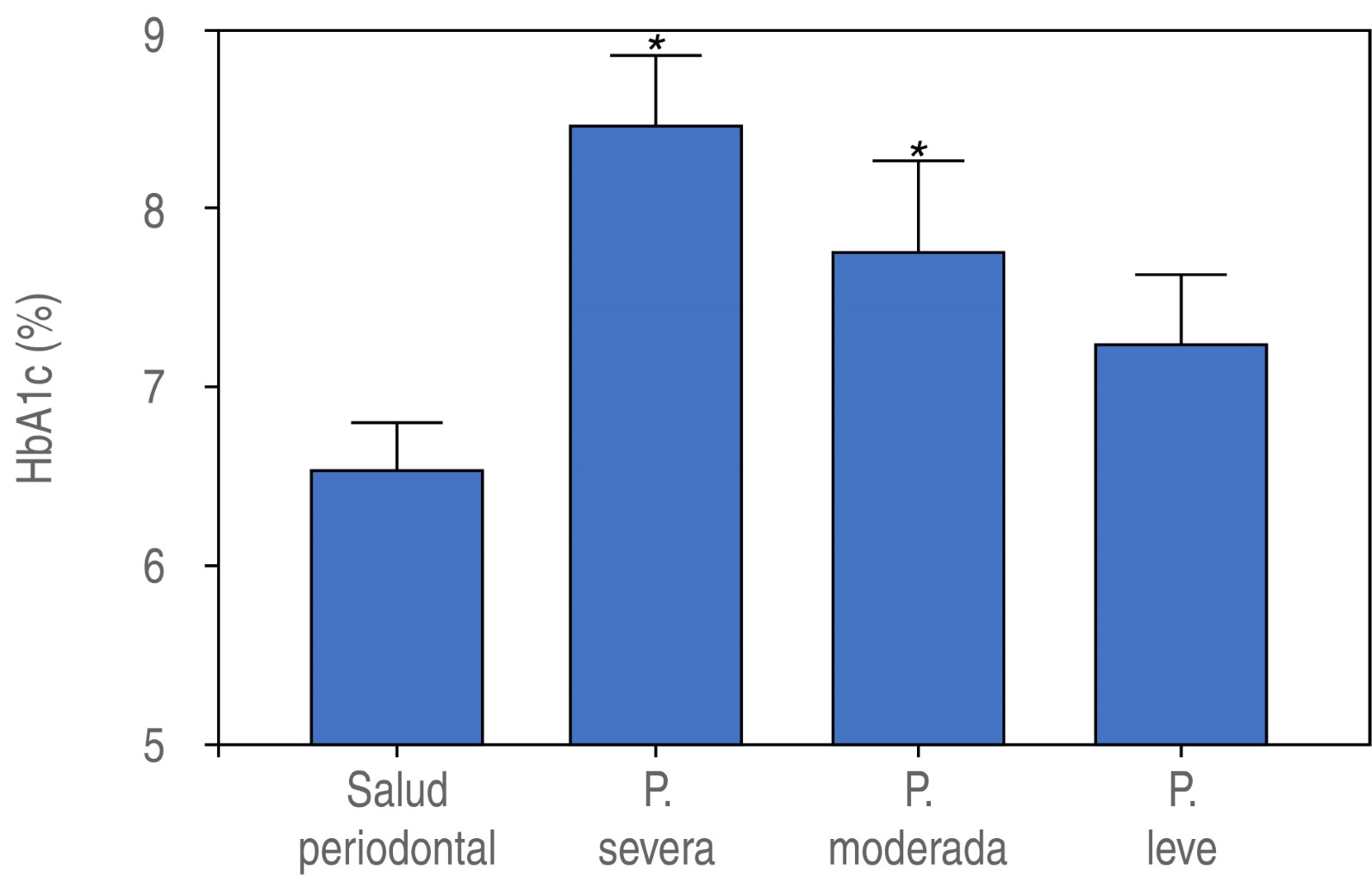 El incremento de los niveles de HbA1c esta correlacionado con la severidad de la periodontitis y los cambios clínicos periodontales, aunado con problemas microvasculares que se presentan durante el desarrollo de la enfermedad.