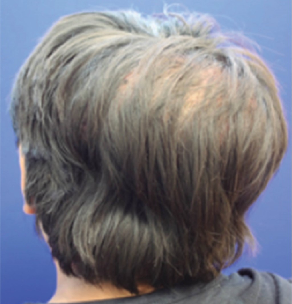 Hombre de 33 años de edad con antecedente de presentar, con un año de evolución, múltiples pápulas eritematosas dolorosas y pruriginosas en la región occipital, que ulteriormente tuvieron salida de material purulento y mal olor. Estas lesiones se extendieron alcanzando un tamaño aproximado de 11 × 8 cm, con tratamiento previo con tetraciclina y Retin-A.