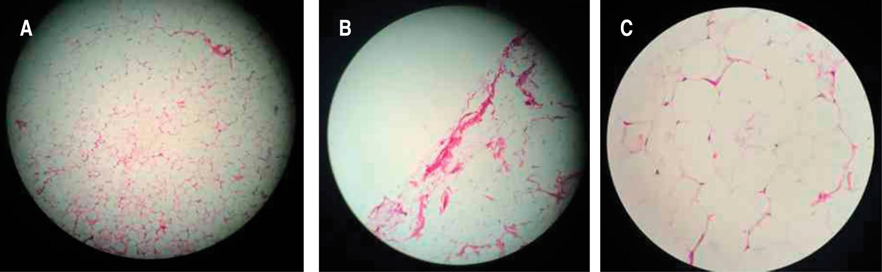 Histológicamente, los lipomas son casi indistinguibles del tejido adiposo normal,4 están compuestos principalmente de adipocitos maduros; estas lesiones son uniformes en forma y tamaño y están bien circunscritas. Una cápsula rodea habitualmente una masa lobular suave, de color amarillo a naranja. Aunque el aspecto histológico se parece al tejido adiposo maduro, los lipomas no derivan de adipocitos maduros, sino de preadipocitos mesenquimatosos.6