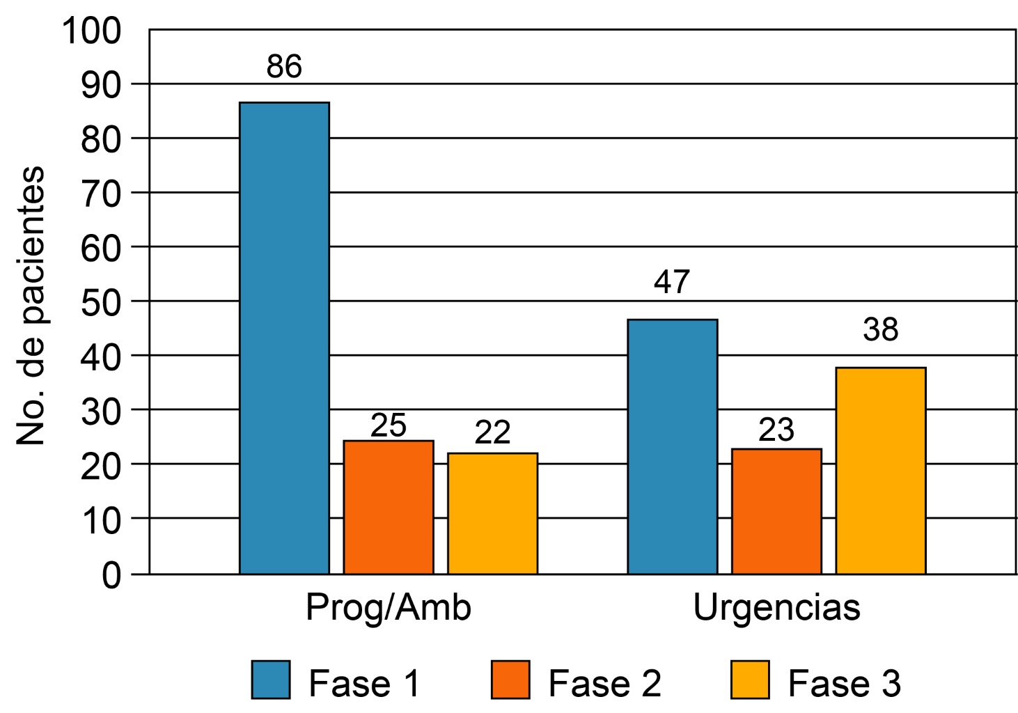 Ante esta nueva enfermedad emergente, en nuestro hospital se observó una disminución de las cirugías programadas durante la fase dos y tres, siendo proporcional el tiempo quirúrgico en relación con los días de estancia intrahospitalaria. En su mayoría los procedimientos se realizaron por vía laparoscópica.