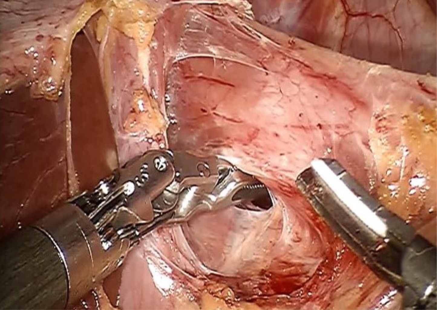 - • Desmantelamiento de la funduplicatura previa mediante disección roma y energía con inserto armónico.