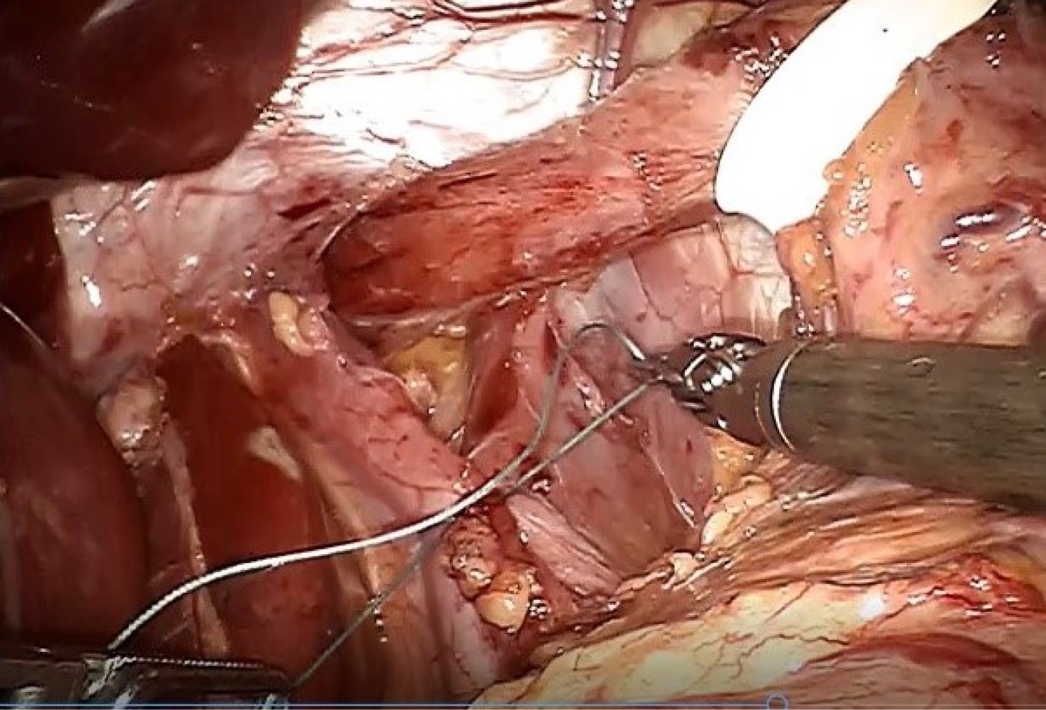 - • Disección de la pars flácida hasta identificar el pilar derecho del hiato esofágico (Figura 2).