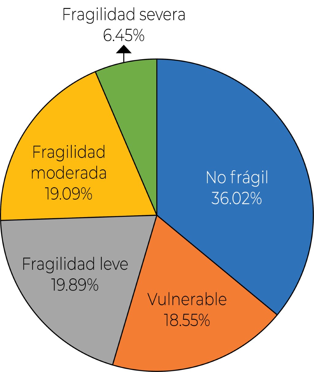 La categoría prevalente de acuerdo con los resultados de la encuesta de Edmonton fue "No frágil" con un 36.02% (Figura 1).