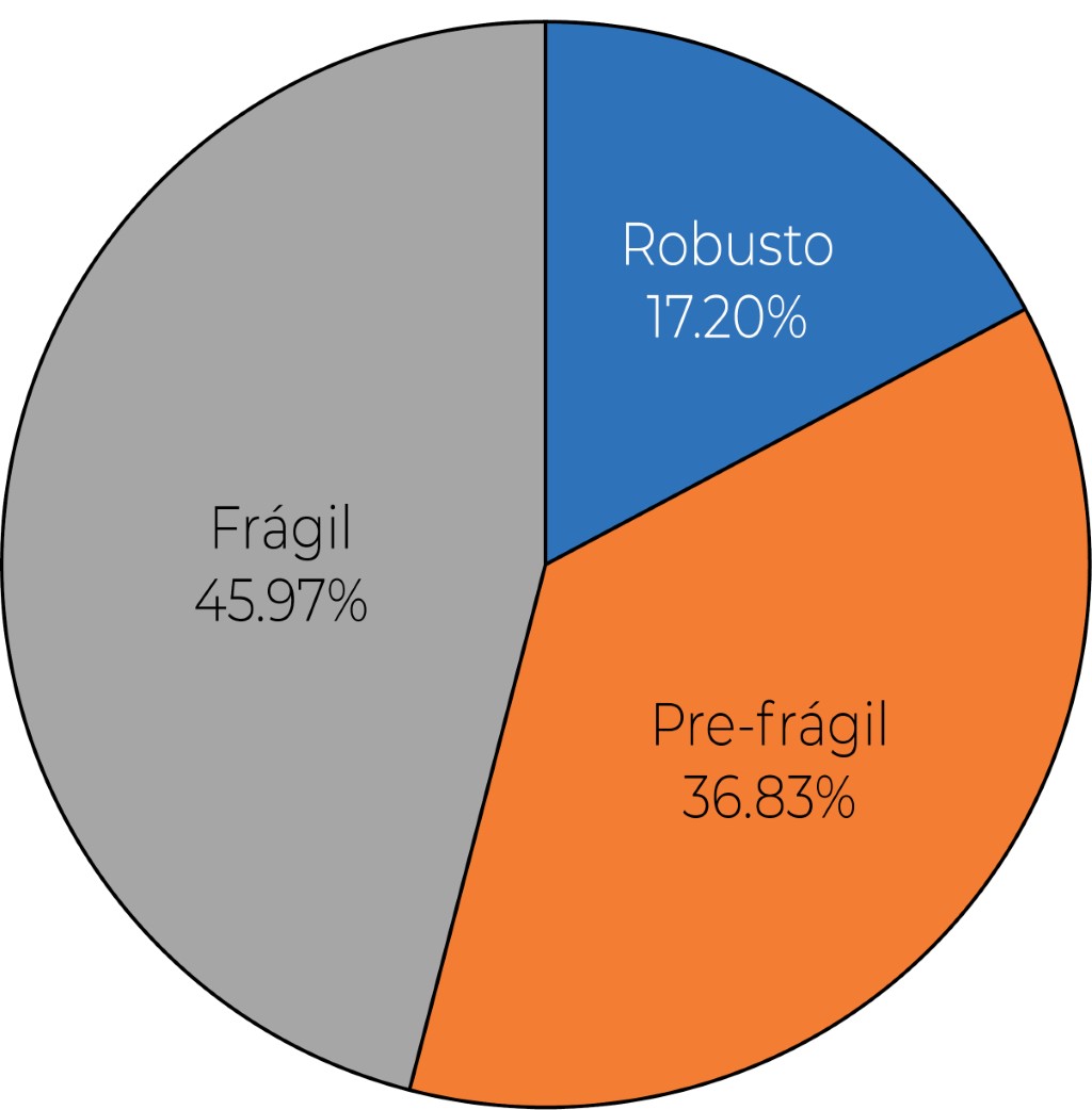 De acuerdo con la valoración FRAIL, la categoría prevalente fue "Frágil" con un 45.97% de los pacientes encuestados (Figura 2).