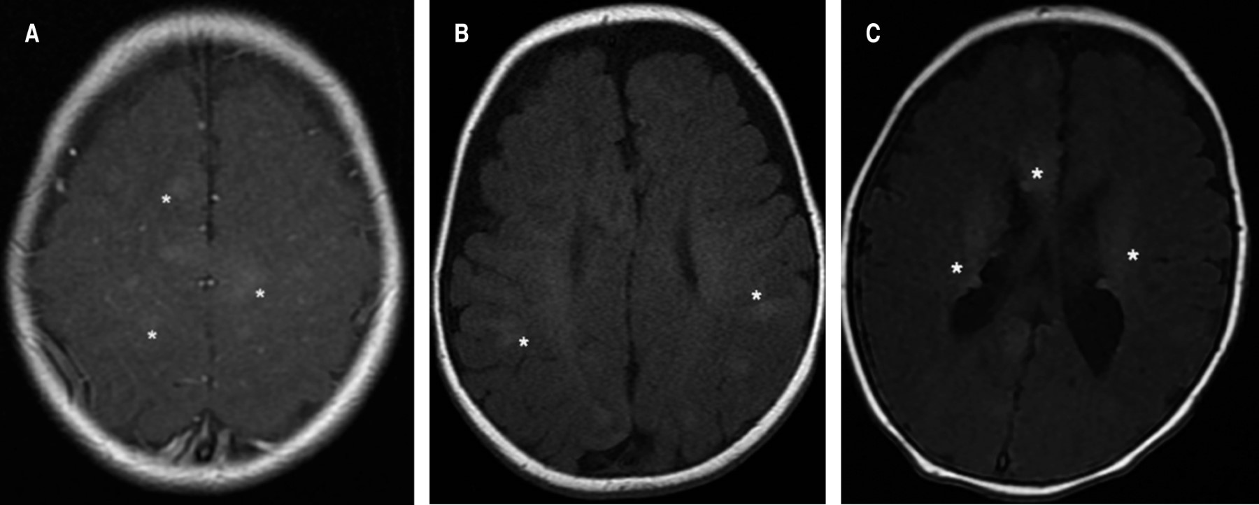 A nivel cerebral se observan malformaciones causadas por alteraciones en la histogénesis, proliferación y migración de las neuronas y células gliales, donde se incluyen los nódulos subependimarios, túberes corticales, subcorticales y astrocitomas subependimarios de células gigantes (SEGA).6 Estas lesiones estructurales suelen estar asociadas a alteraciones neurológicas, como epilepsia, trastornos del espectro autista, de la conducta y la discapacidad intelectual.7