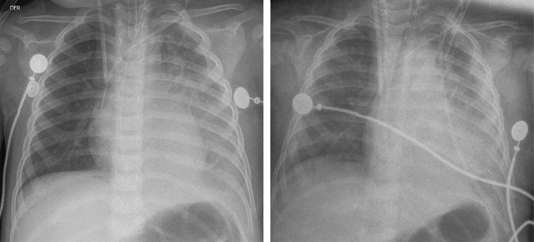 Paciente masculino de 23 meses de edad previamente sano, quien consulta por cuatro días de vómito, somnolencia e ictericia progresiva. Ingresa en malas condiciones generales: taquicárdico, con disminución de los ruidos respiratorios en hemitórax izquierdo, hepatomegalia palpable. Paraclínicos con leucocitosis, neutrofilia, anemia y trombocitopenia severa, proteína C reactiva elevada (41.6 mg/L), hiperazoemia, elevación de transaminasas e hiperbilirrubinemia directa (Tabla 1).