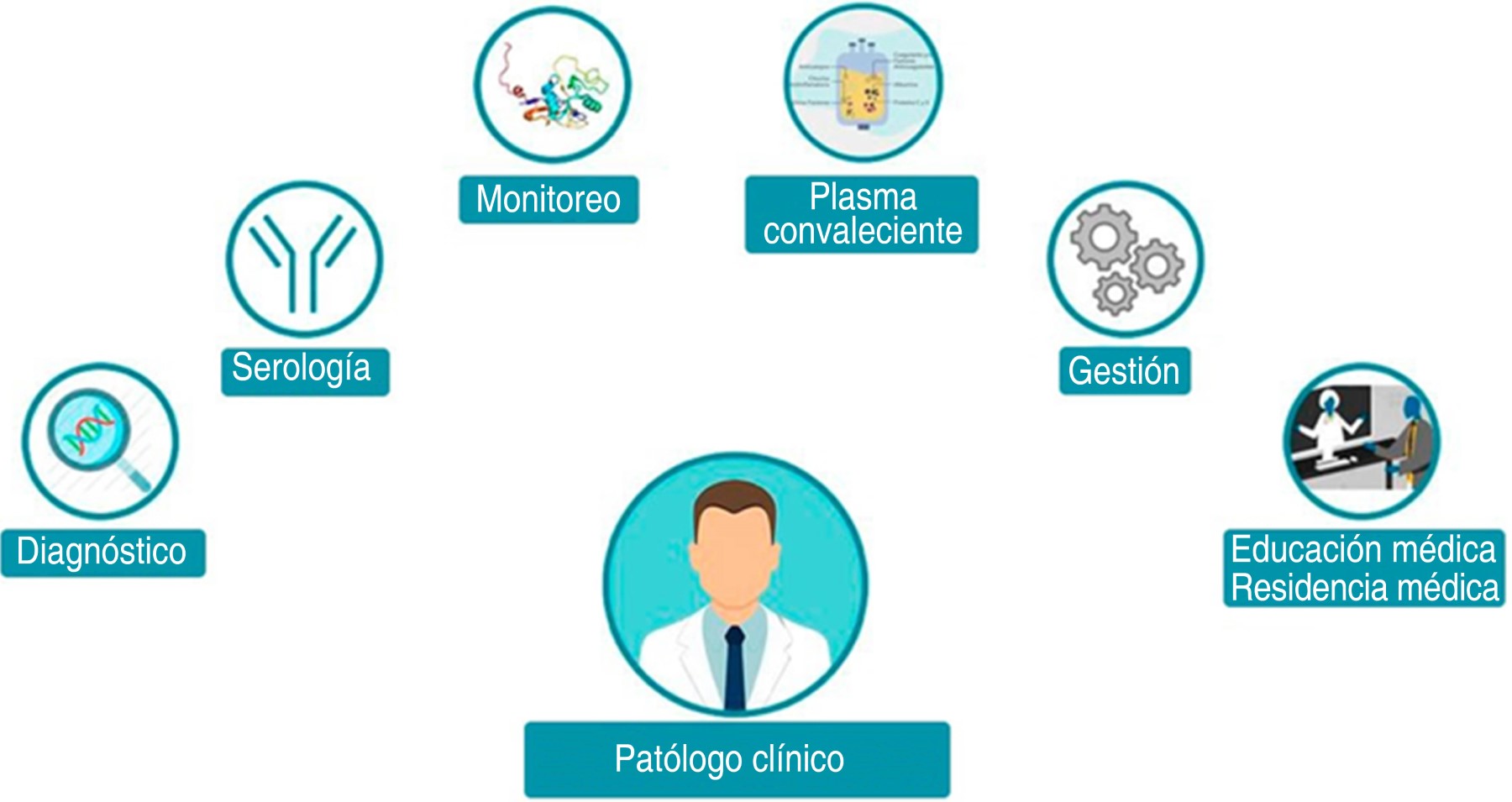 El patólogo clínico no sólo cumple con su papel asistencial, sino también con el de gestor, que ha permitido que los laboratorios clínicos alcancen las metas trazadas por su misión, visión institucional e implementación, ciñéndose a las recomendaciones de las guías nacionales e internacionales, a la constante actualización en cuanto a metodologías, equipos y flujos de trabajo y adecuándose a la demanda de servicios de salud en pos de brindar resultados precisos y confiables.